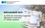 «За січень - грудень 2025 року платники податків Одеського регіону сплатили до державного бюджету 6,7 млрд грн військового збору», - повідомив начальник Головного управління ДПС в Одеській області Юрій Гурський.