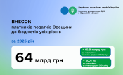 «За січень - грудень 2025 року суб’єкти господарювання Одеської області сплатили 64 млрд грн податків, зборів та обов’язкових платежів до бюджетів усіх рівнів, що на 20,4 %, або на 10,9 млрд грн більше ніж за 2024 рік», – зазначив начальник Головного управління ДПС в Одеській області Юрій Гурський.