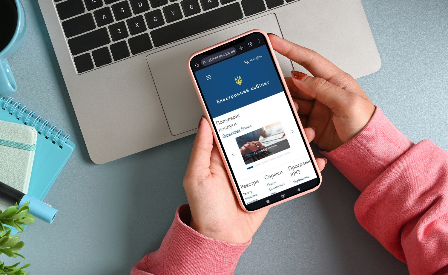 Вхід до Електронного кабінету здійснюється за адресою: https://cabinet.tax.gov.ua або через вебпортал ДПС.