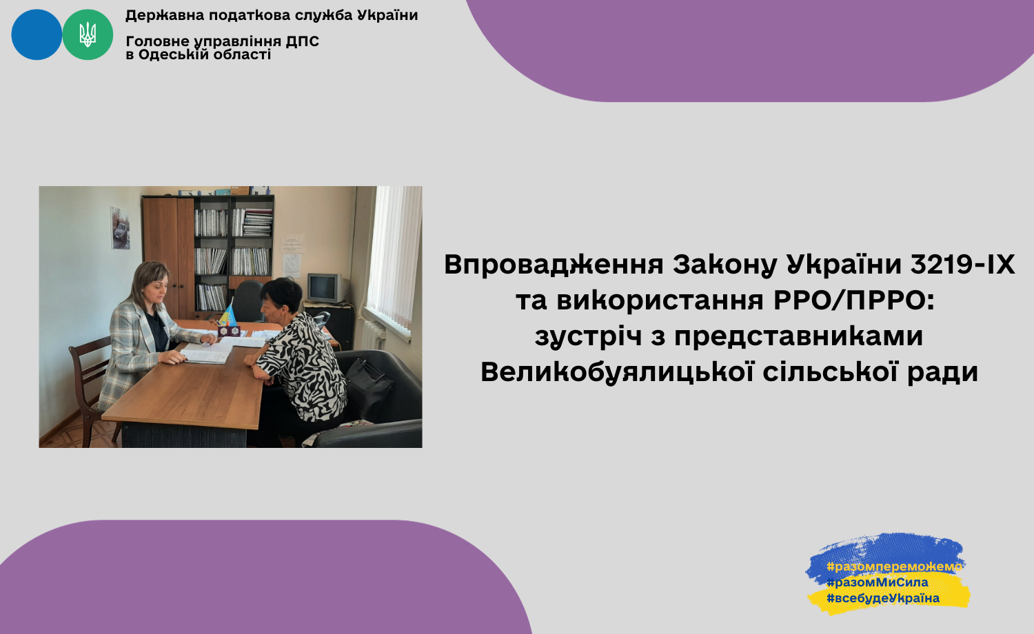 В приміщенні Іванівської ДПІ Головного управління ДПС в Одеській області відбулася зустріч в. о. начальника Іванівської ДПІ Головного управління ДПС в Одеській області Безік Ірини Миколаївни з головою Великобуялицької сільської ради Березівського району Одеської області Івановою Іриною щодо питання дотримання законодавства у сфері застосування РРО/ПРРО.