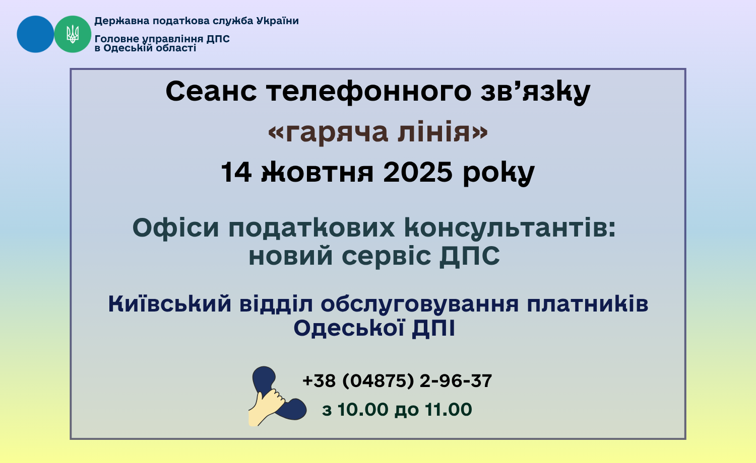 Сеанс телефонного зв’язку «гаряча лінія» Офіси податкових консультантів: новий сервіс ДПС