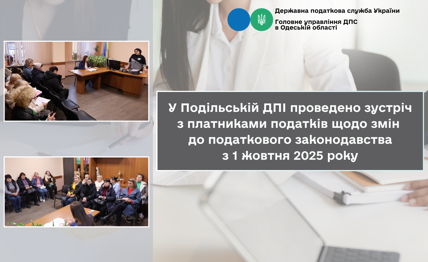 Працівниками Подільської державної податкової інспекції Головного управління ДПС в Одеській області проведено зустріч з платниками податків щодо змін до податкового законодавства з 1 жовтня 2025 року.
