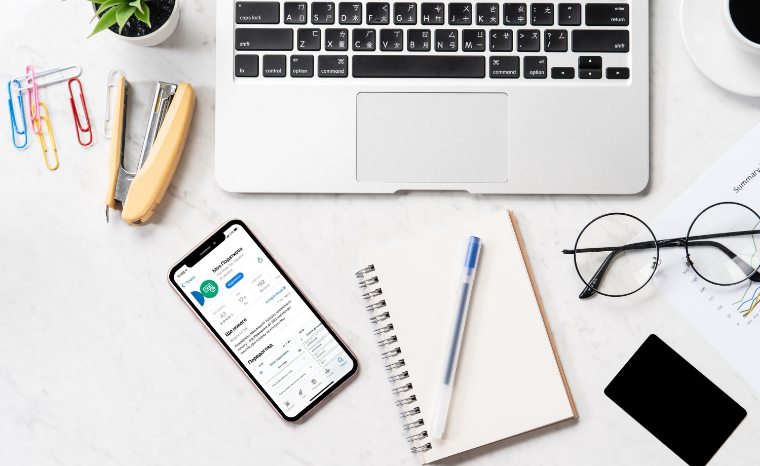 Завантажуйте застосунок «Моя податкова» в AppStore або GooglePlay, ідентифікуйтеся онлайн за допомогою файлового або хмарного КЕП будь-якого надавача та використовуйте більше сервісів.
