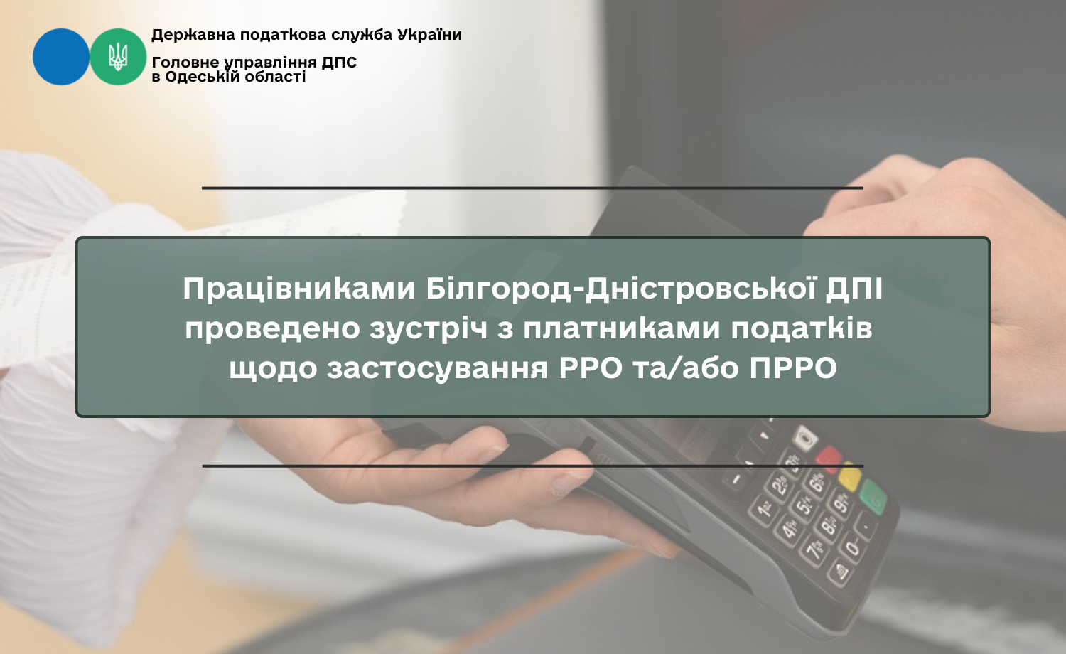 Працівниками Білгород-Дністровської державної податкової інспекції Головного управління ДПС в Одеській області проведено зустріч з платниками податків щодо застосування РРО та/або ПРРО.