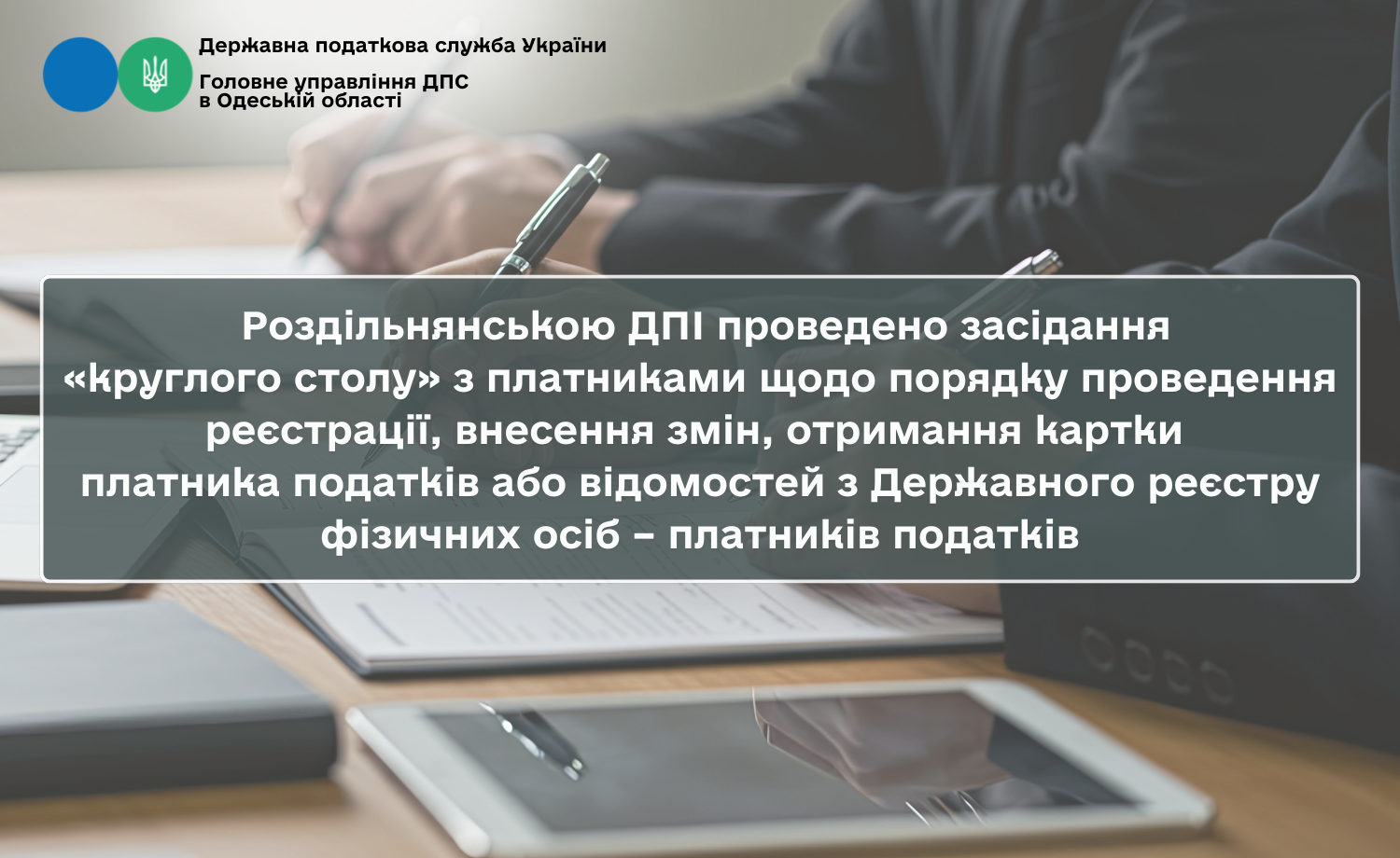 Спеціалістами Роздільнянської державної податкової інспекції Головного управління ДПС в Одеській області проведено засідання «круглого столу» з платниками податків щодо проведення реєстрації, внесення змін, отримання картки платника податків або відомостей з Державного реєстру фізичних осіб – платників податків.
