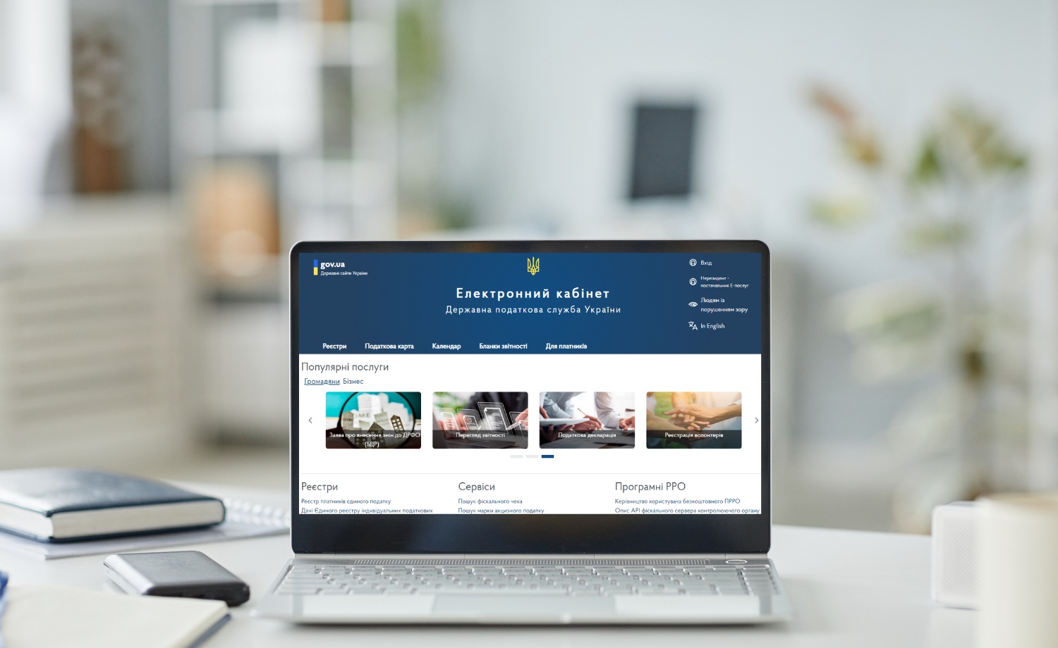 Вхід до Електронного кабінету здійснюється за адресою: https://cabinet.tax.gov.ua, а також через офіційний вебпортал ДПС.