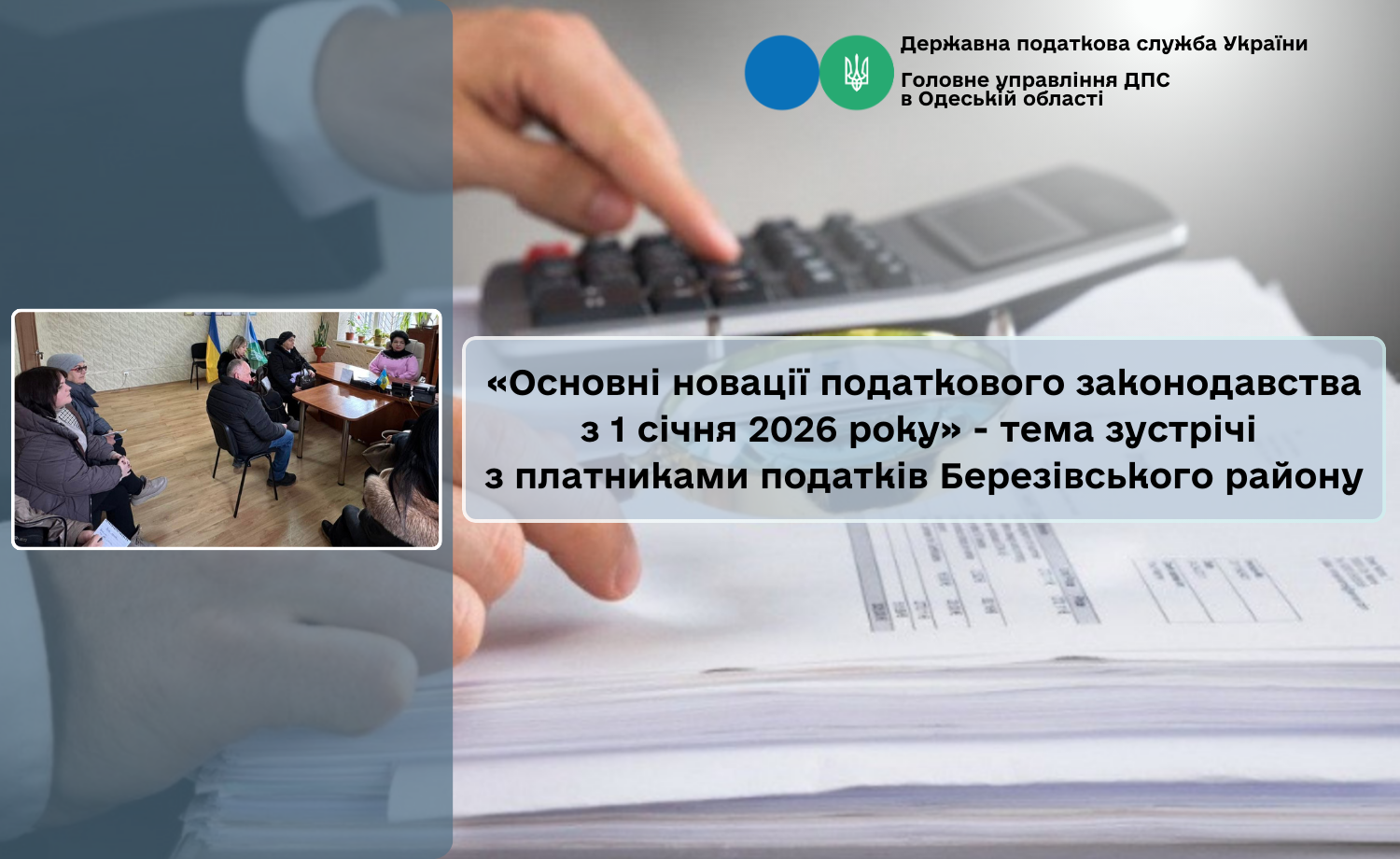 Працівниками Березівської державної податкової інспекції Головного управління ДПС в Одеській області проведено зустріч з платниками податків на тему «Основні новації податкового законодавства з 1 січня 2026 року».