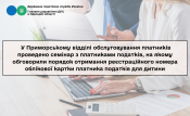 У Приморському відділі обслуговування платників проведено семінар з платниками податків, на якому обговорили порядок отримання реєстраційного номера облікової картки платника податків для дитини