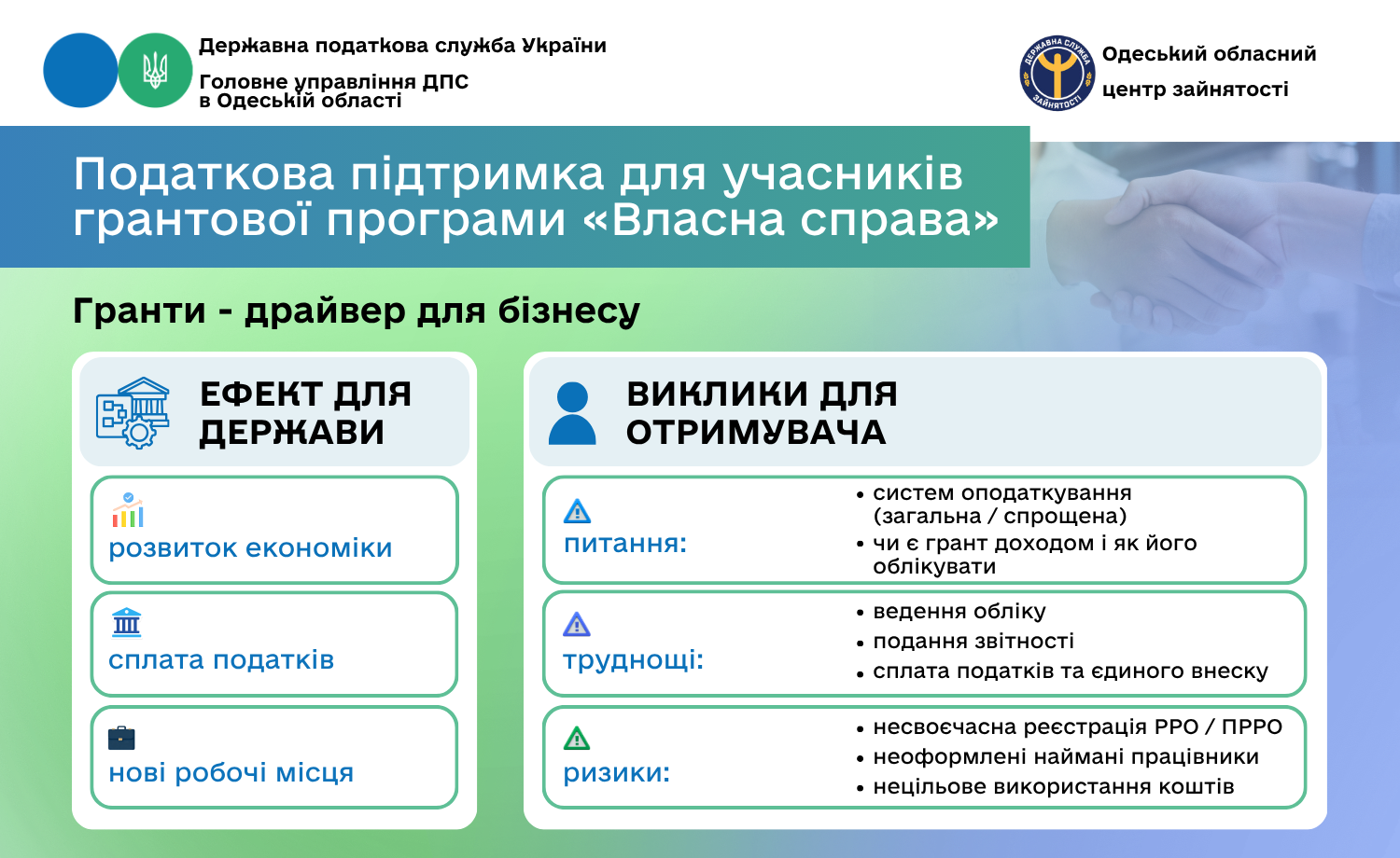 Податкова підтримка для учасників грантової програми "Власна справа"
