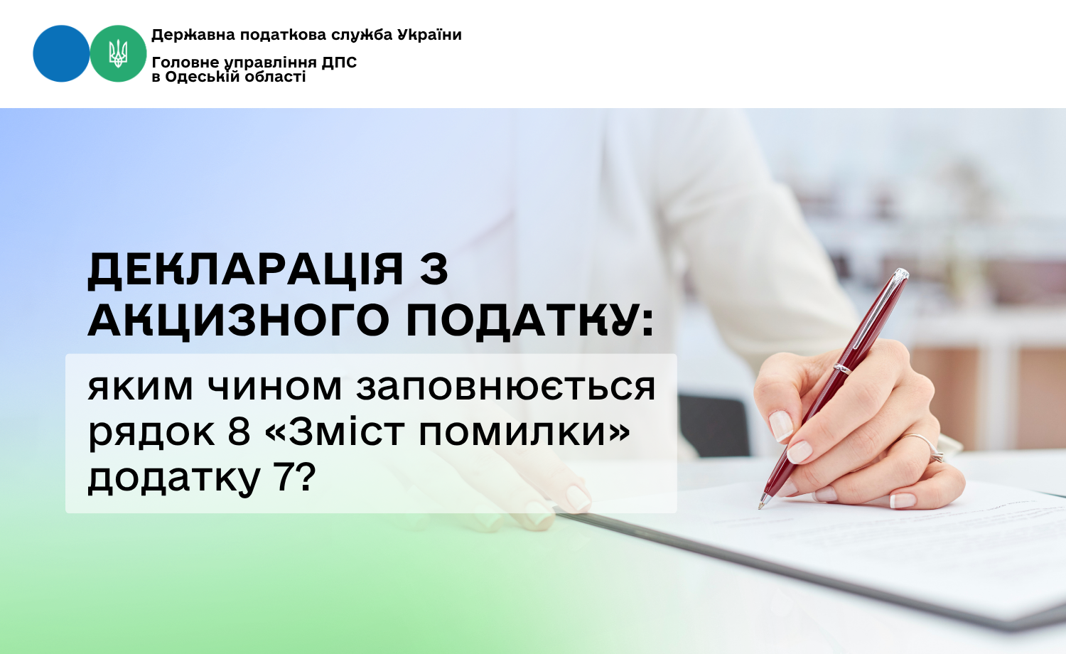 Відповідно до змісту додатка 7 «Розрахунок суми акцизного податку, що збільшує або зменшує податкові зобов’язання внаслідок виправлення самостійно виявленої помилки, допущеної в попередніх звітних періодах» (далі – Додаток 7) до Декларації у рядку 8 зазначається зміст самостійно виявленої помилки, з метою виправлення якої подано Додаток 7.