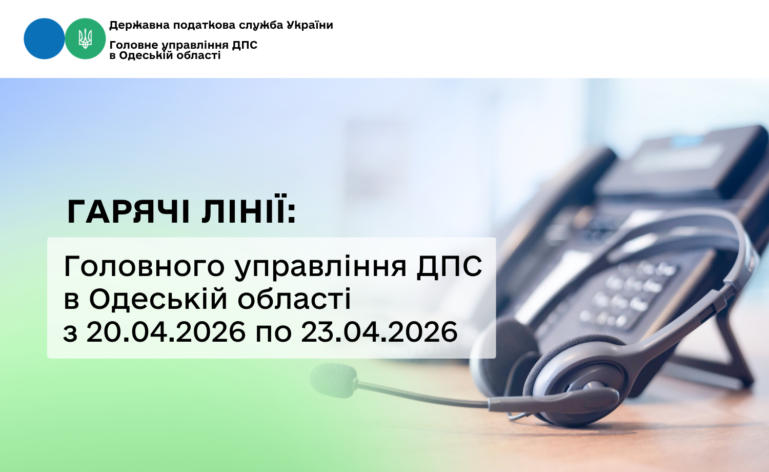 Гарячі лінії: Головного управління ДПС в Одеській області з 20.04.2026 по 23.04.2026 року