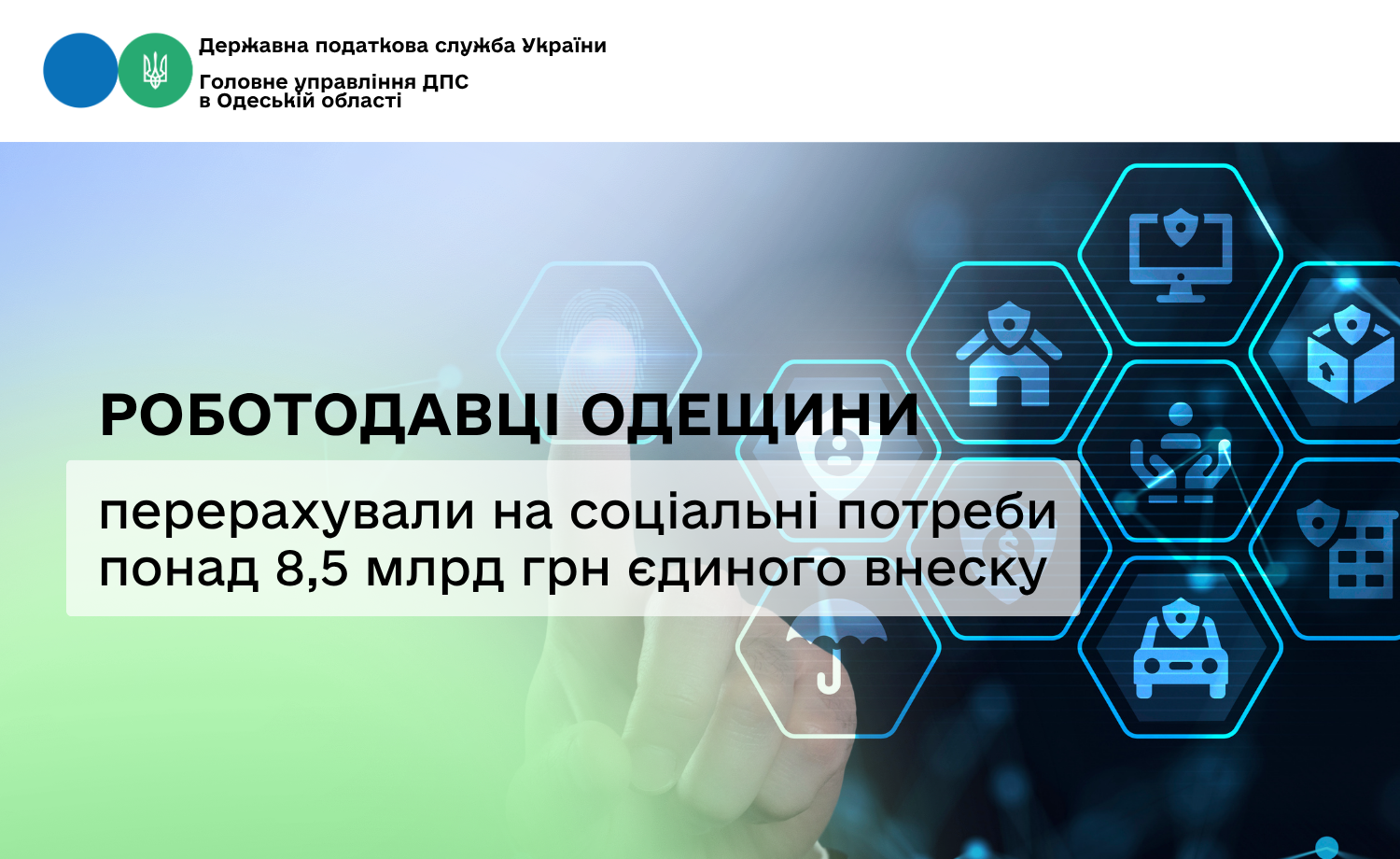 Начальник Головного управління ДПС в Одеській області Юрій Гурський поінформував, що протягом I кварталу 2026 року платниками податків Одещини перераховано до бюджету 8,5 млрд грн єдиного внеску, що на 16,3 %, або на 1,2 млрд грн більше, ніж за січень - березень 2025 року.