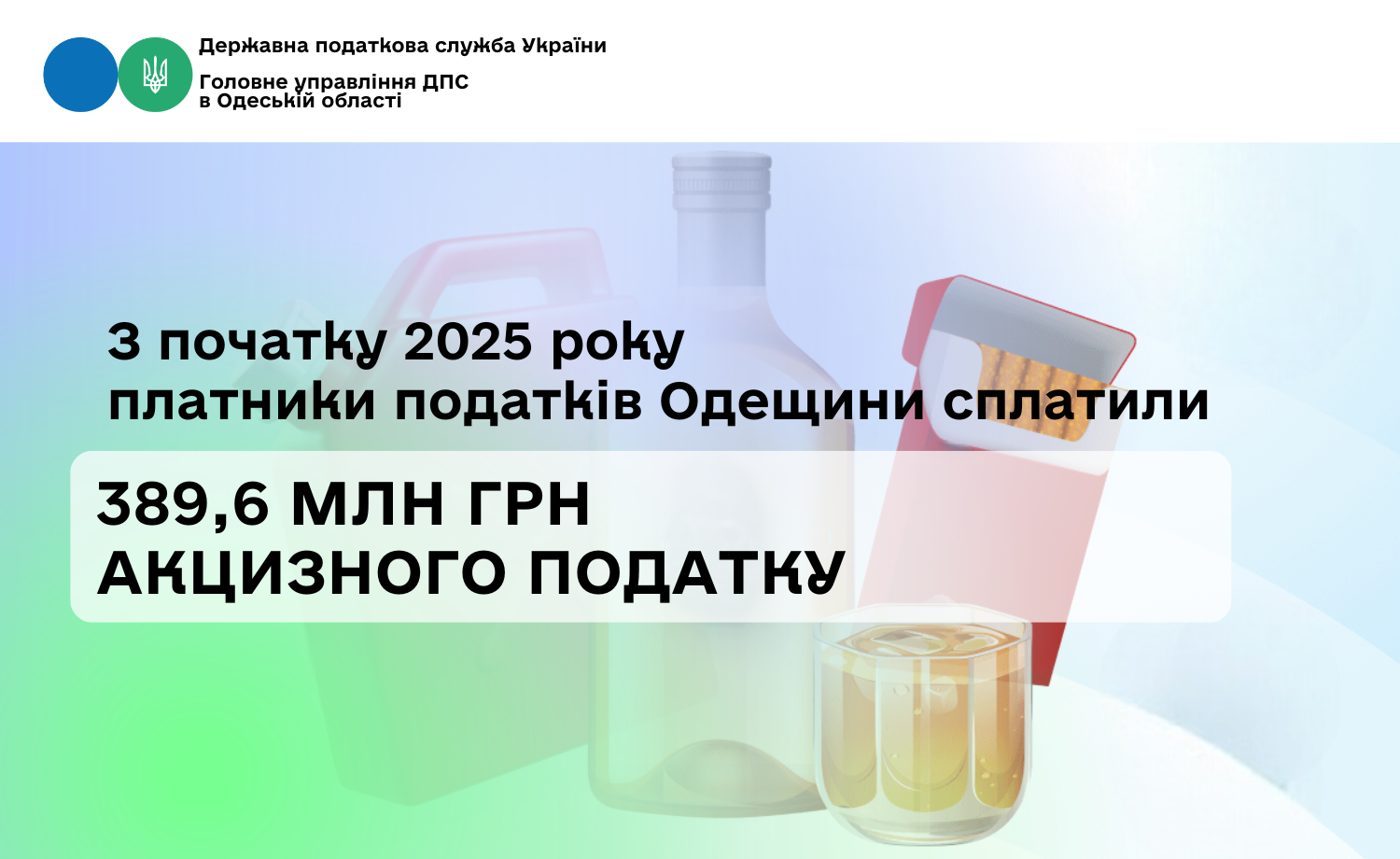 За січень – серпень 2025 року суб’єкти господарювання Одеського регіону сплатили до бюджетів усіх рівнів 389,6 млн грн акцизного податку, що на 40,8 млн грн більше, ніж у відповідному періоді минулого року.