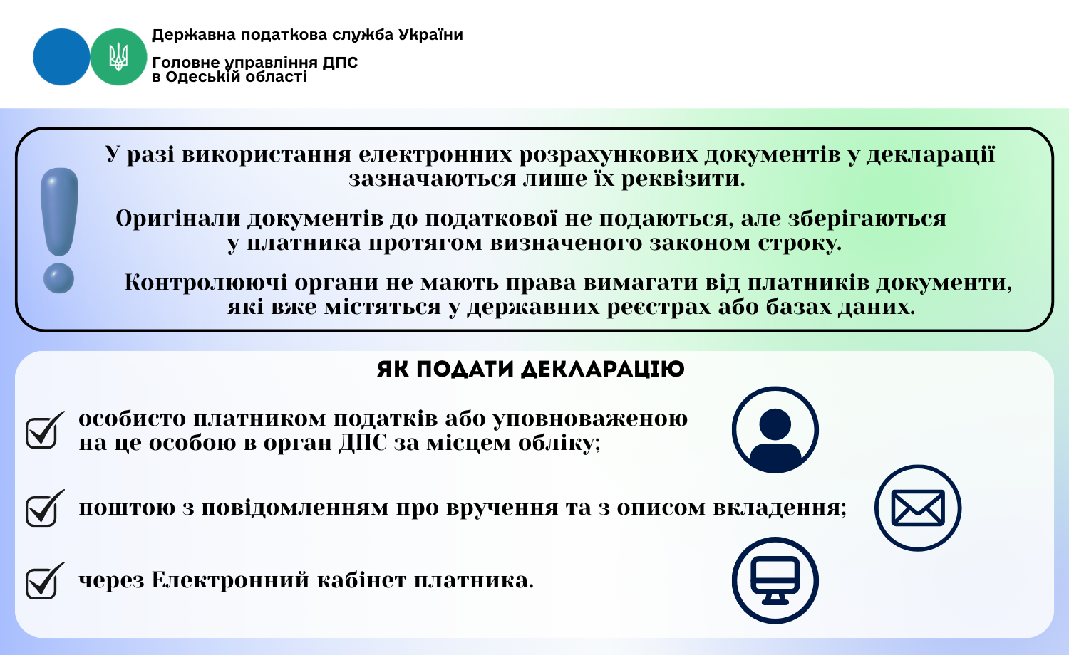 У разі використання електронних розрахункових документів у декларації зазначаються лише їх реквізити.