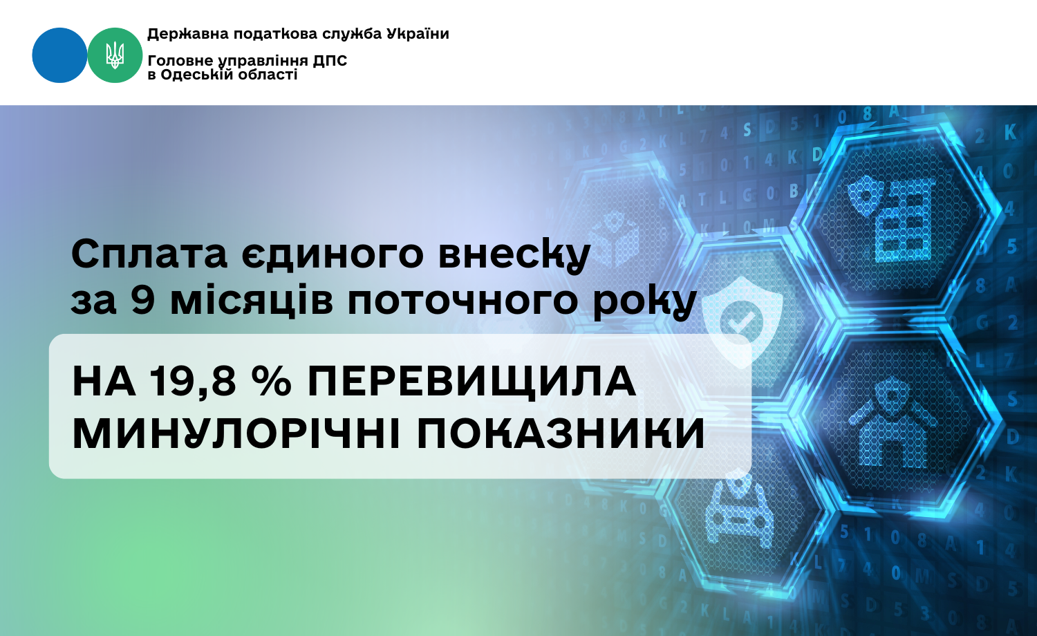 «За січень – вересень 2025 року платники перерахували 23,3 млрд грн єдиного внеску на загальнообов’язкове державне соціальне страхування. Це на 19,8 %, або на 3,9 млрд грн більше за відповідний період минулого року», - зазначив начальник Головного управління ДПС в Одеській області Юрій Гурський.