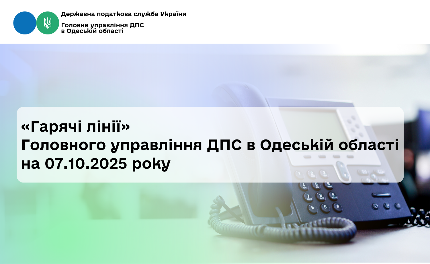 «Гарячі лінії» Головного управління ДПС в Одеській області на 07.10.2025 року
