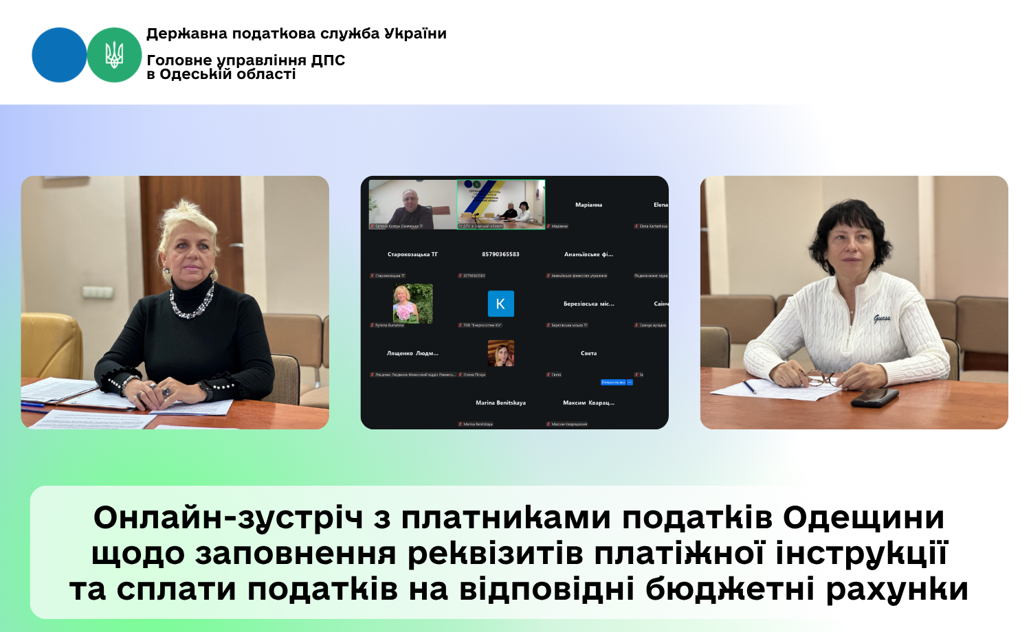 Онлайн-зустріч з платниками податків Одещини щодо заповнення реквізитів платіжної інструкції та сплати податків на відповідні бюджетні рахунки