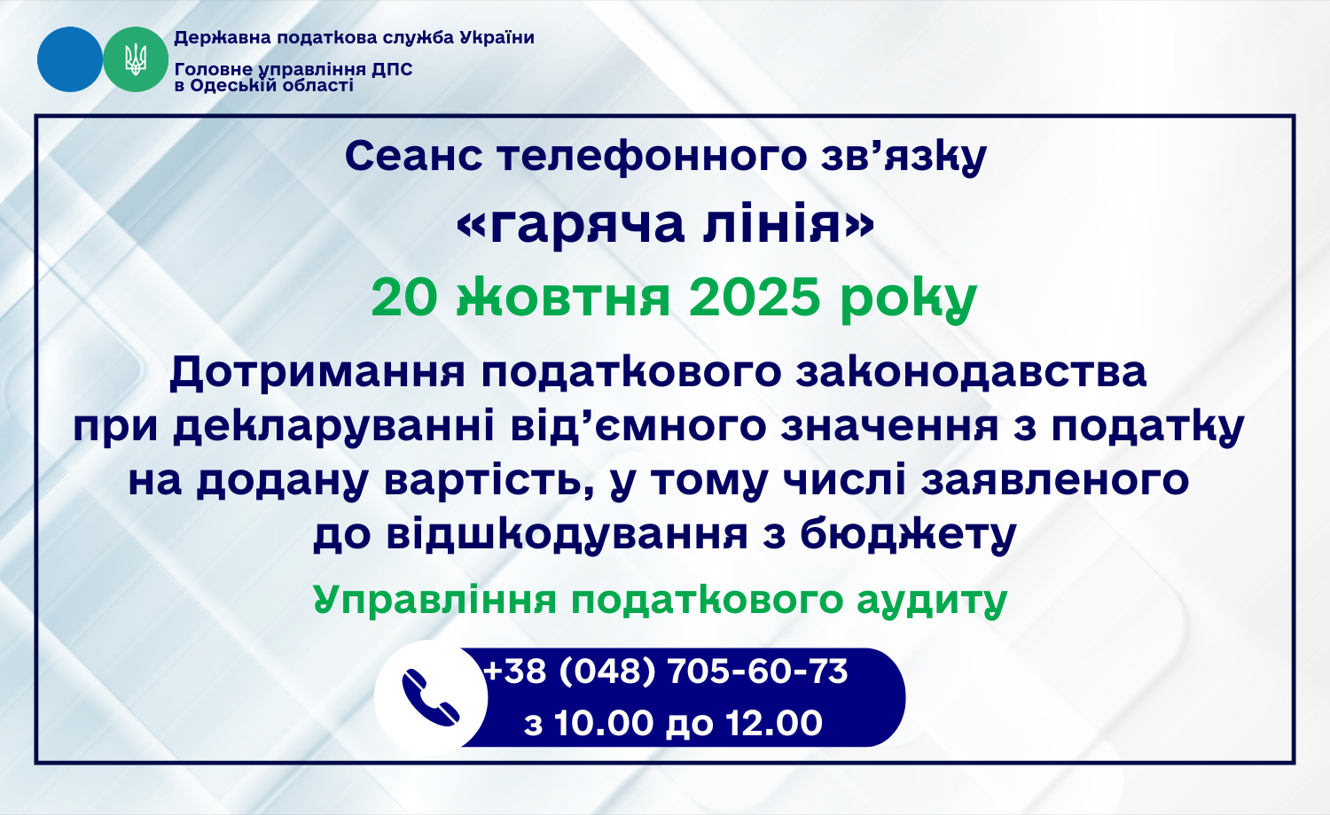 Сеанс телефонного зв’язку «гаряча лінія» щодо дотримання податкового законодавства при декларуванні від’ємного значення з податку на додану вартість, у тому числі заявленого до відшкодування з бюджету