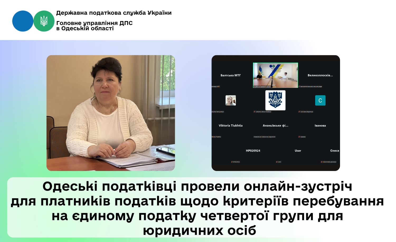 Крім того, Ольга Пріступ розповіла учасникам заходу про порядок обрання,  переходу на спрощену систему оподаткування платниками єдиного податку четвертої групи або відмови від неї та нагадала, що 30 жовтня останній день сплати єдиного податку з юридичних осіб платниками єдиного податку четвертої групи за ІІІ квартал 2025 року.