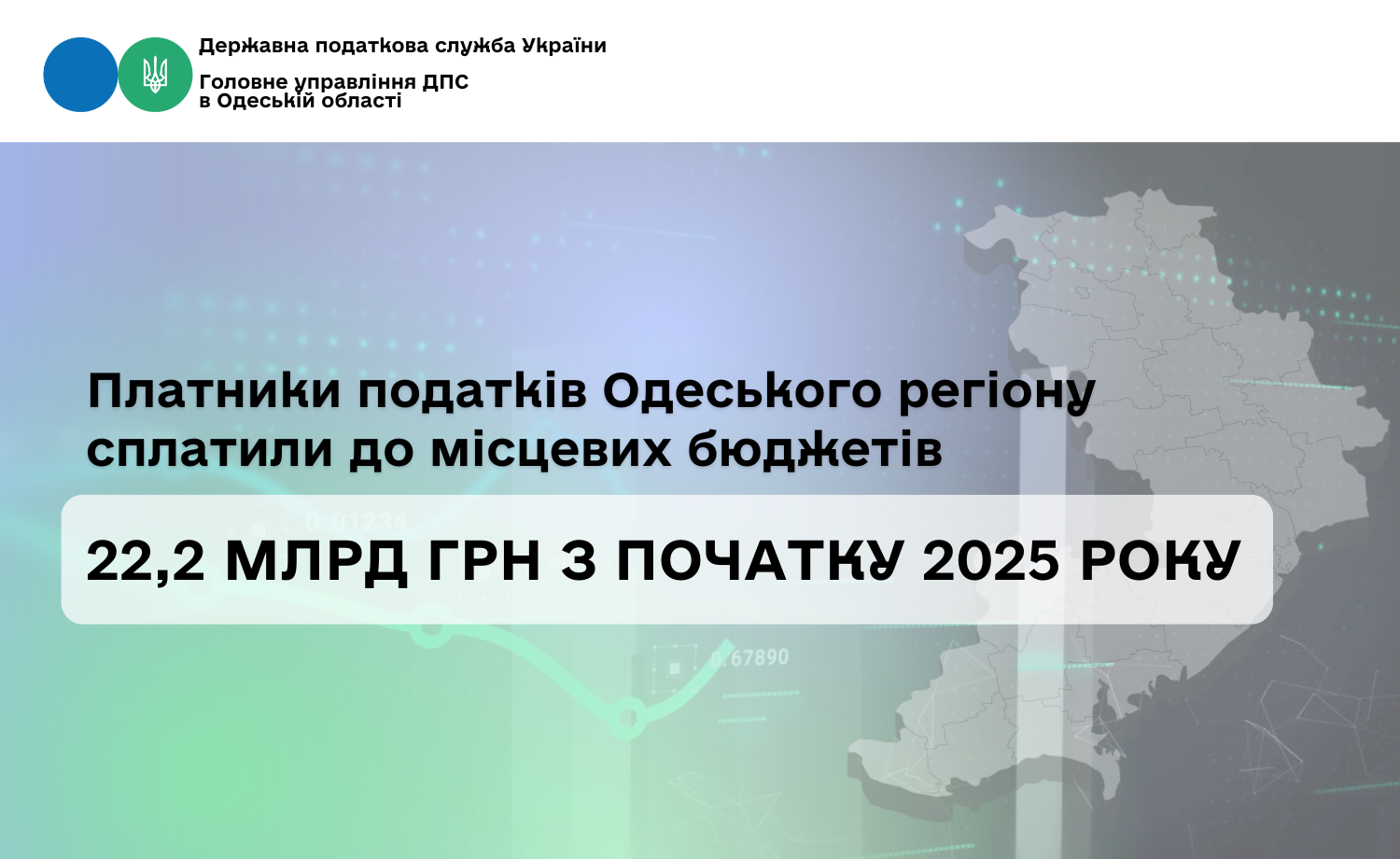 Платники податків Одеського регіону сплатили до місцевих бюджетів 22,2 млрд грн з початку 2025 року