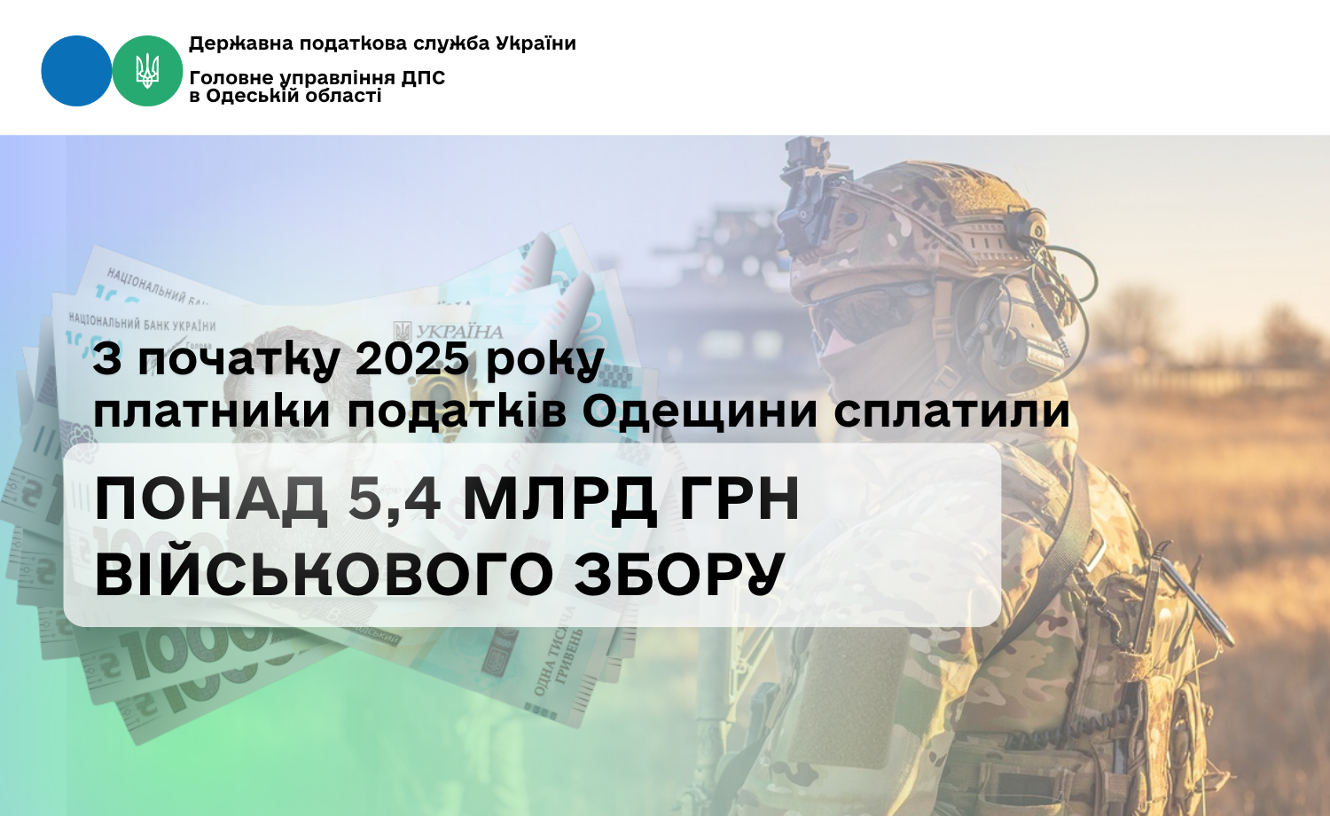 З початку 2025 року платники податків Одещини сплатили понад 5,4 млрд грн військового збору