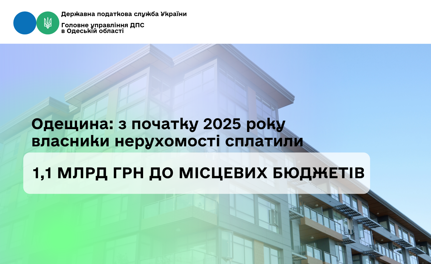 Одещина: з початку 2025 року власники нерухомості сплатили 1,1 млрд грн до місцевих бюджетів