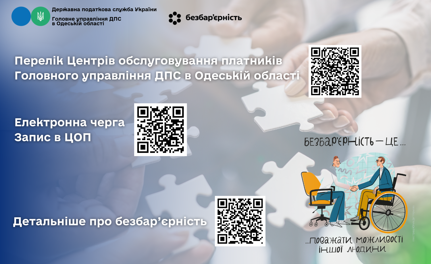 Безбар'єрність обслуговування для платників податків Одеського регіону