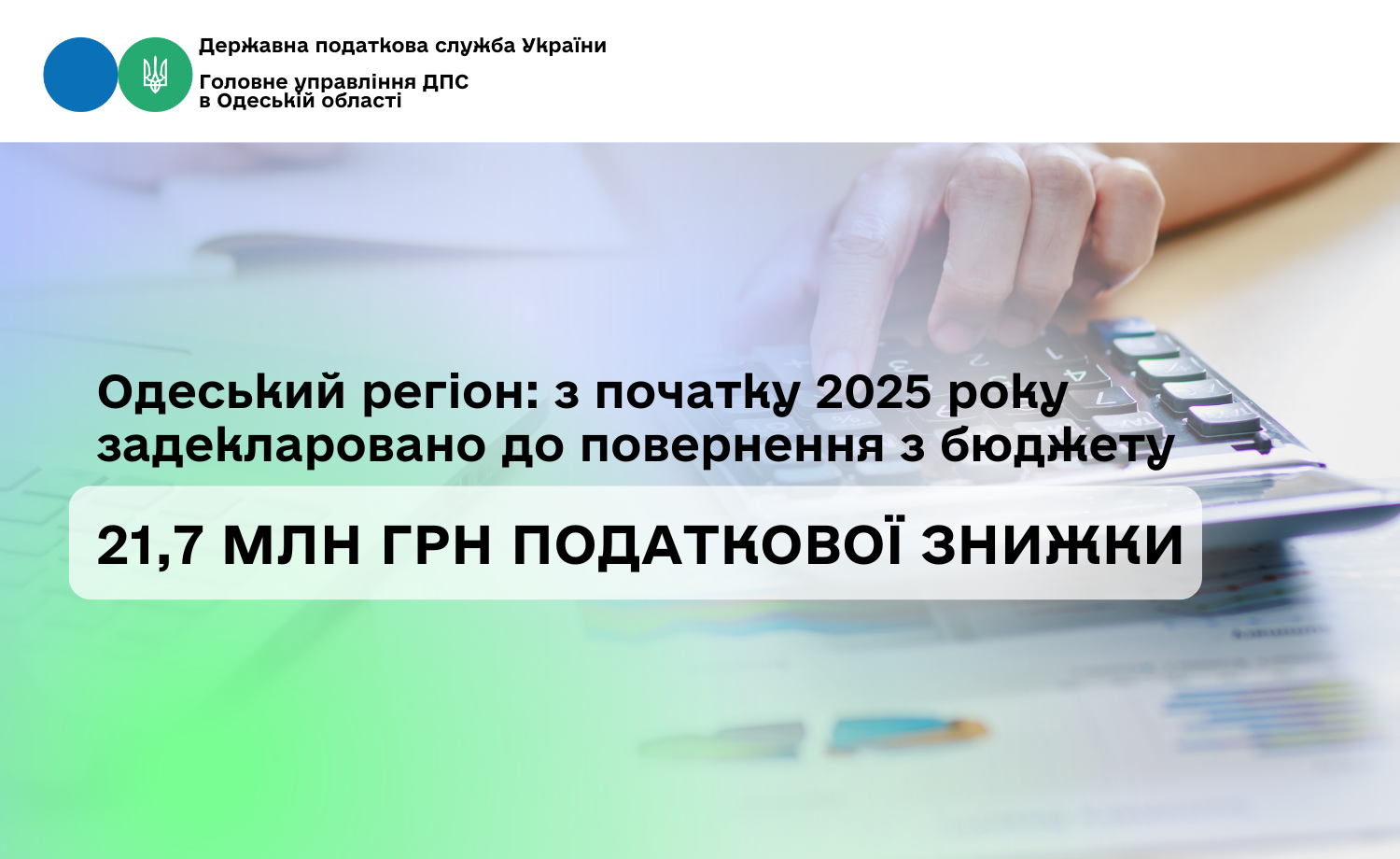 Протягом січня – жовтня 2025 року до податкової служби Одеської області подано 4 235 декларації про майновий стан і доходи за 2024 рік, з метою отримання права на податкову знижку.