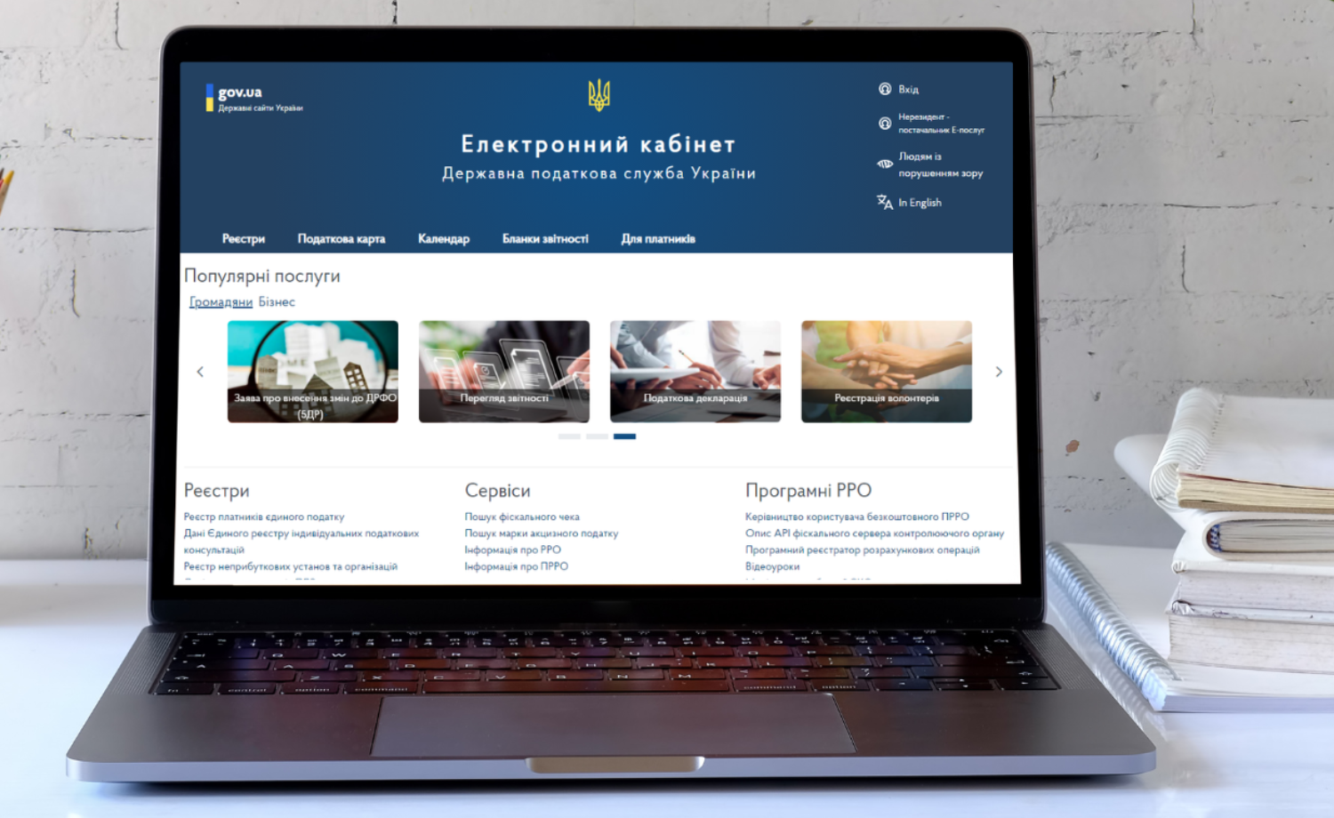 Вхід до Електронного кабінету здійснюється за адресою: https://cabinet.tax.gov.ua, а також через офіційний вебпортал ДПС.
