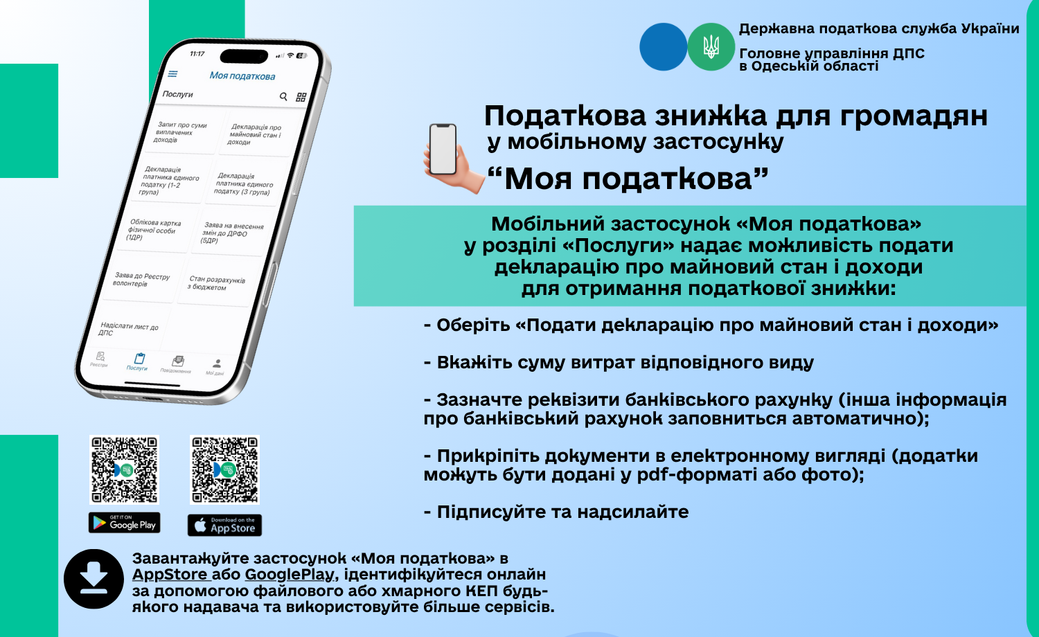 Податкова знижка у мобільному застосунку "Моя податкова"