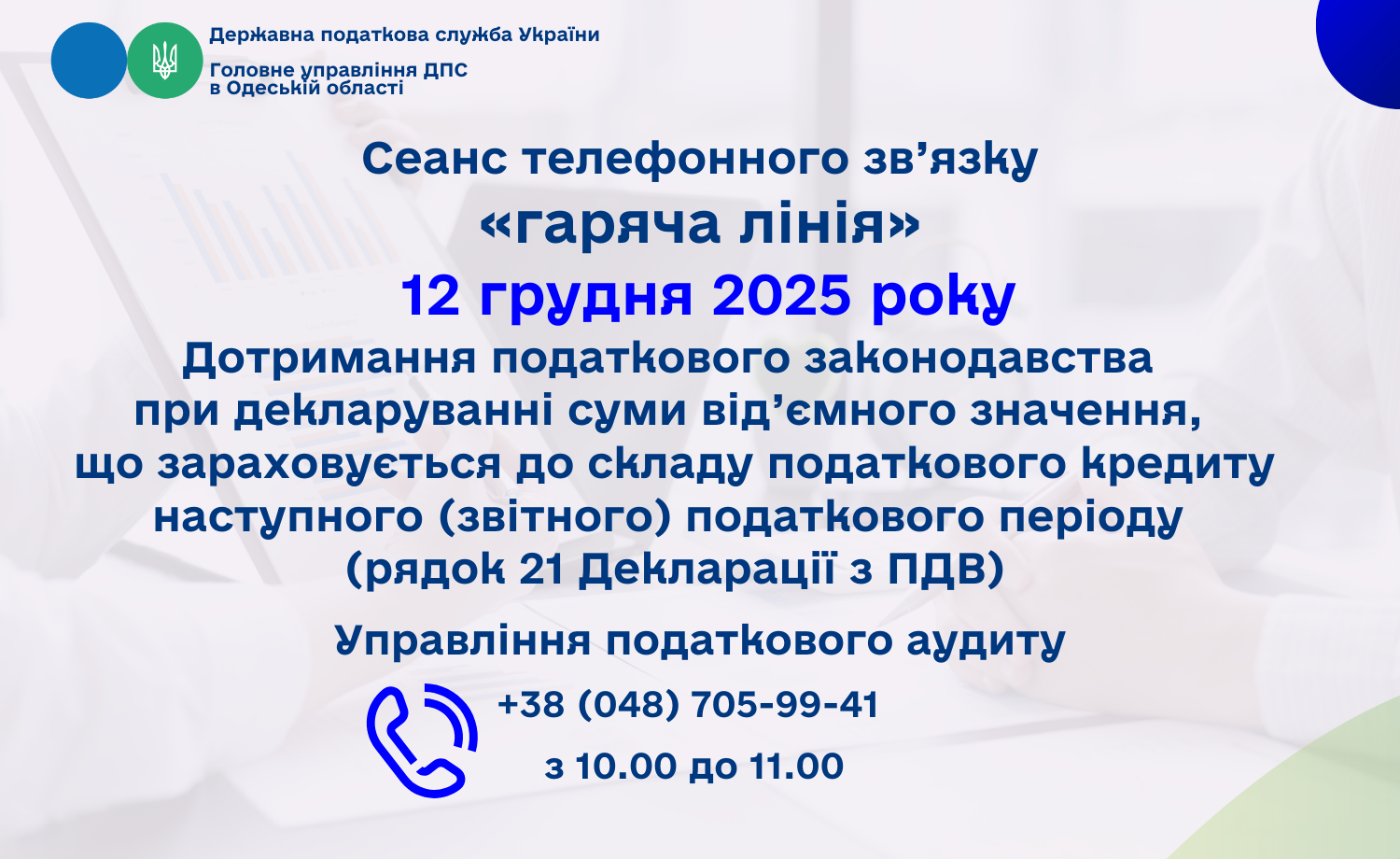 Сеанс телефонного зв'язку "гаряча лінія" Дотримання податкового законодавства при декларуванні суми від’ємного значення, що зараховується до складу податкового кредиту наступного (звітного) податкового періоду (рядок 21 Декларації з ПДВ)