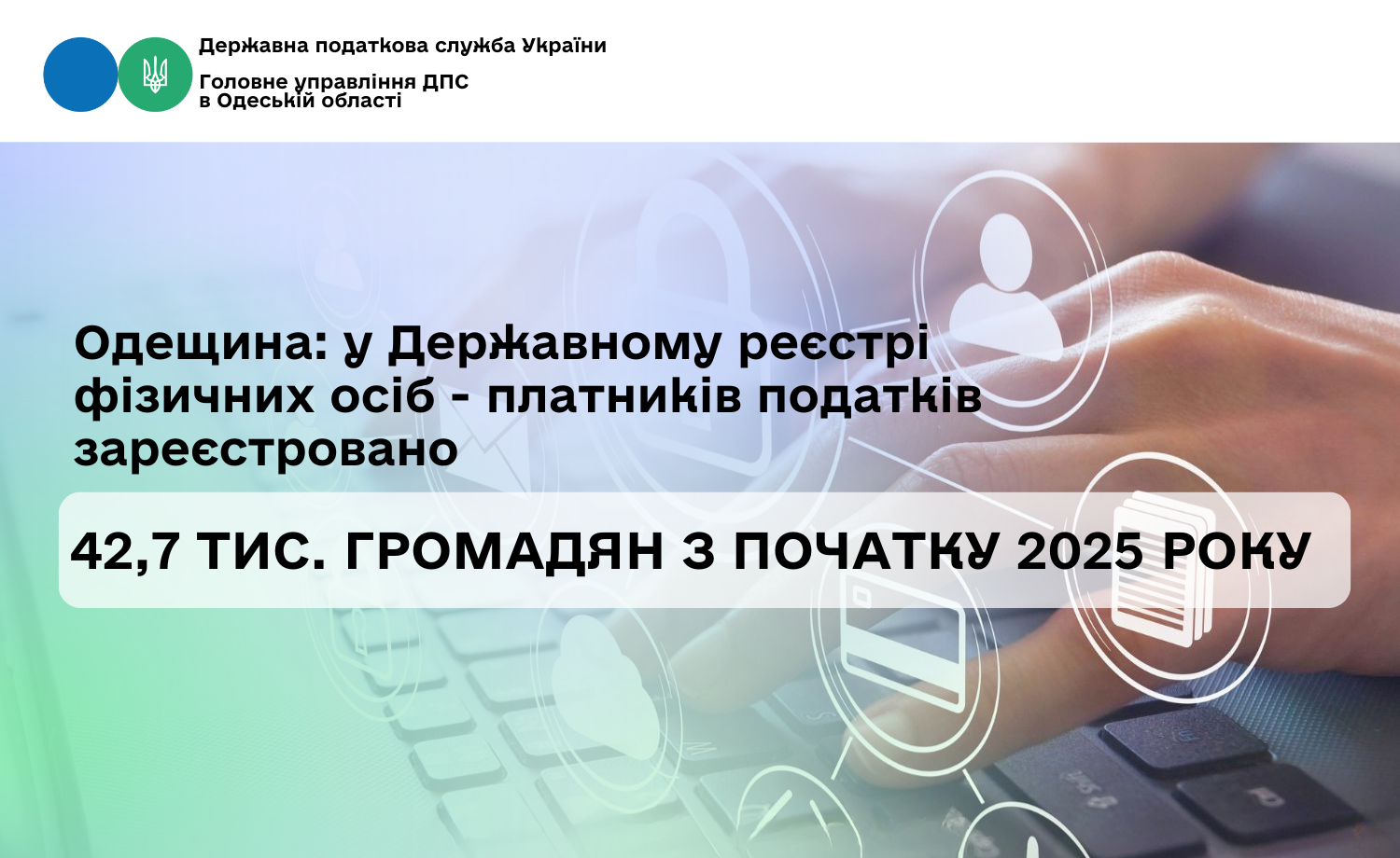 Одещина: у Державному реєстрі фізичних осіб – платників податків зареєстровано 42,7 тис. громадян з початку 2025 року