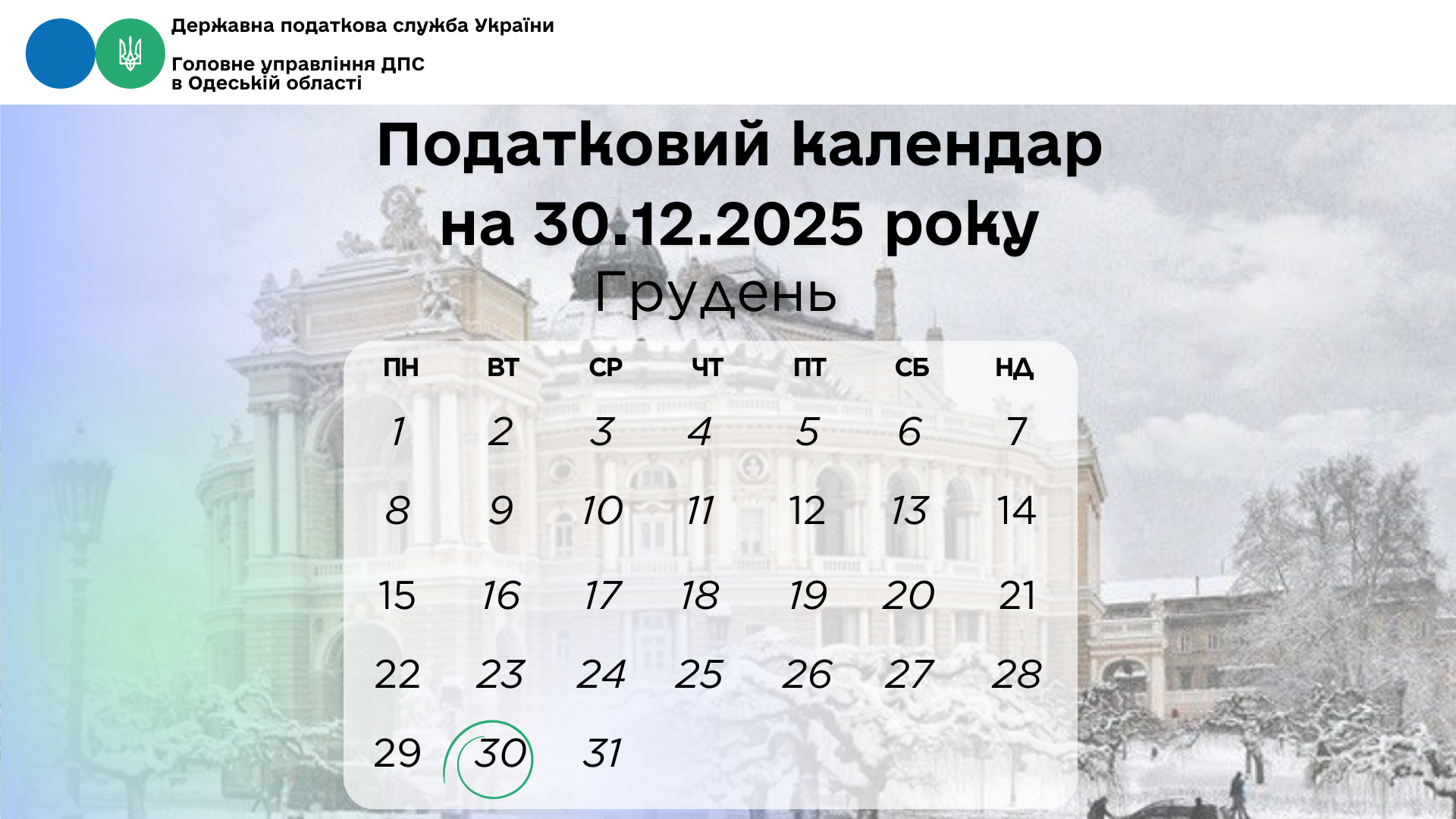 Податковий календар на 30 грудня 2025 року