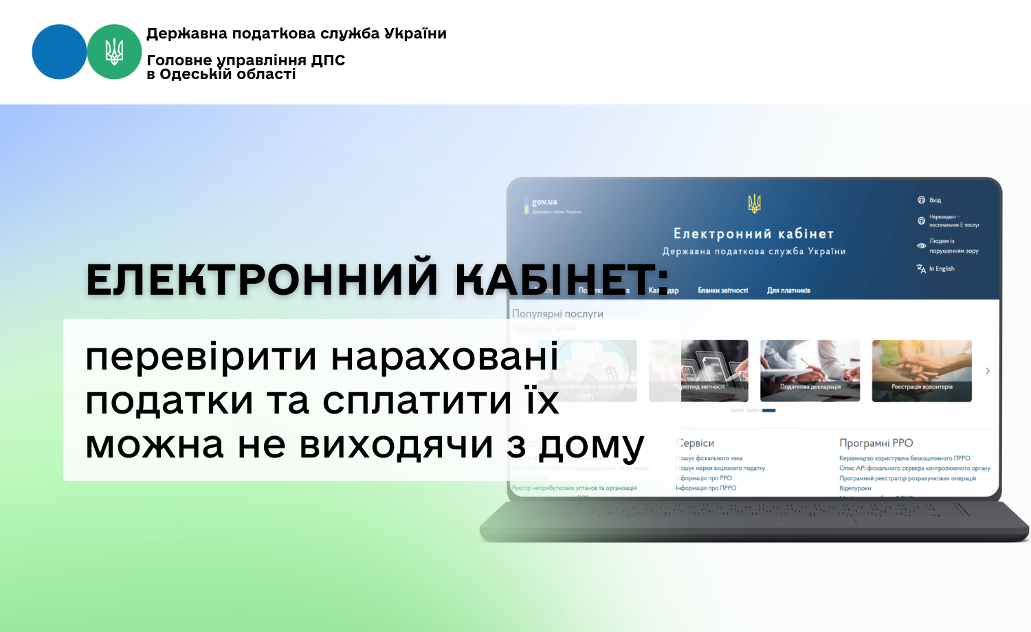 Головне управління ДПС в Одеській області нагадує, що сервіси Електронного кабінету дозволяють фізичним особам у будь-який час переглядати свої податкові зобов’язання та здійснювати платежі в кілька кліків.