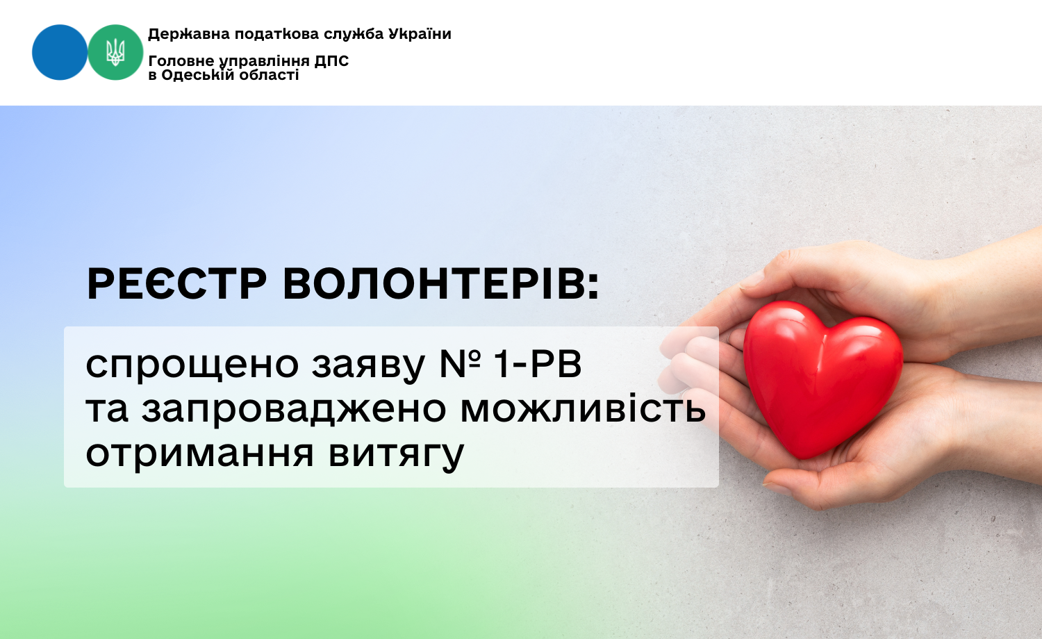 Головне управління ДПС в Одеській області нагадує, що спрощено заяву для включення до Реєстру волонтерів, а також запроваджено можливість отримувати витяг із Реєстру в електронному вигляді. Це означає менше бюрократії, швидше оформлення документів і зручний доступ до власних даних онлайн.
