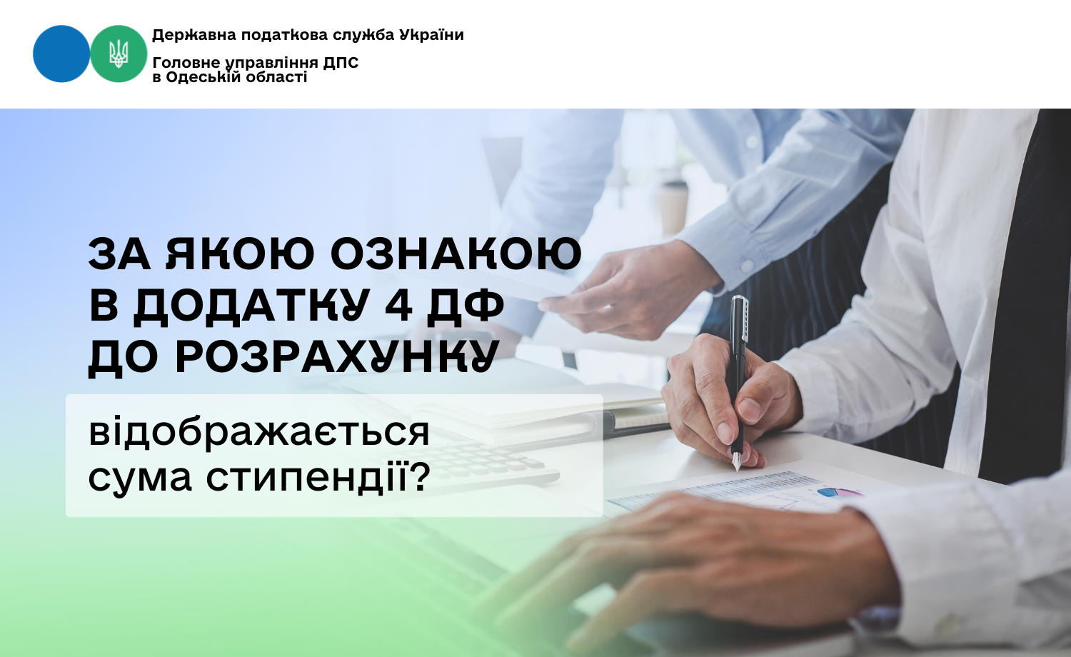 Головне управління ДПС в Одеській області нагадує, що відповідно до положень ст. 53 Закону України від 05 вересня 2017 року № 2145-VІІІ «Про освіту» здобувачі освіти – вихованці, учні, студенти, курсанти, слухачі, стажисти, аспіранти (ад’юнкти), інші особи, які здобувають освіту за будь-яким видом та формою здобуття освіт, мають гарантоване державою право на забезпечення стипендіями у порядку встановленому Кабінетом Міністрів України.