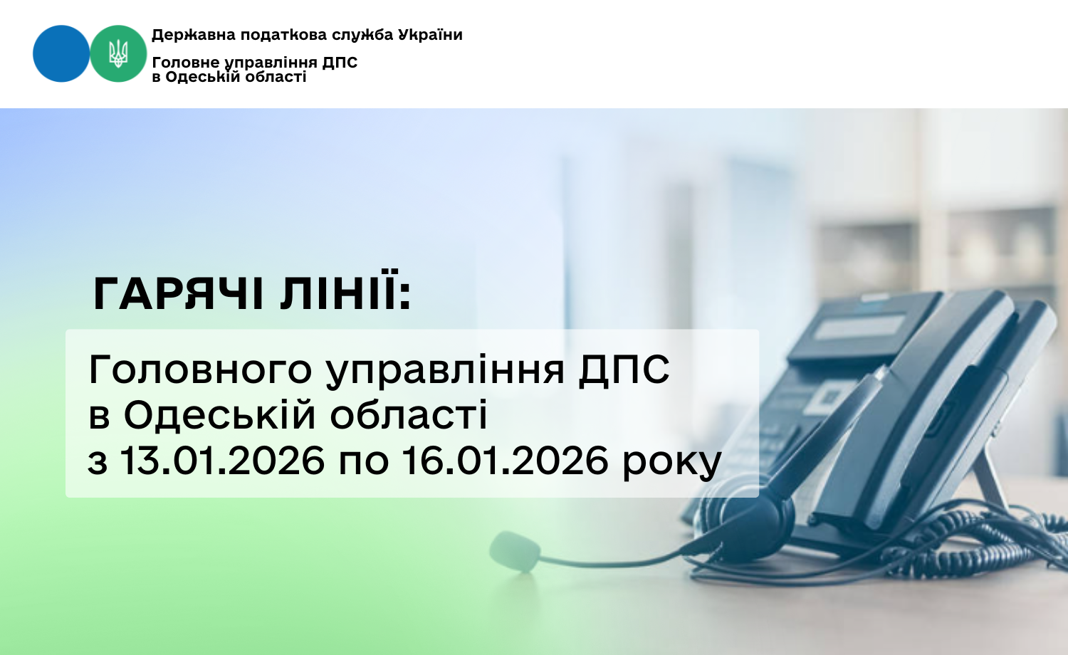 - Гарячі лінії: Головного управління ДПС в Одеській області з 13.01.2026 по 16.01.2026 року