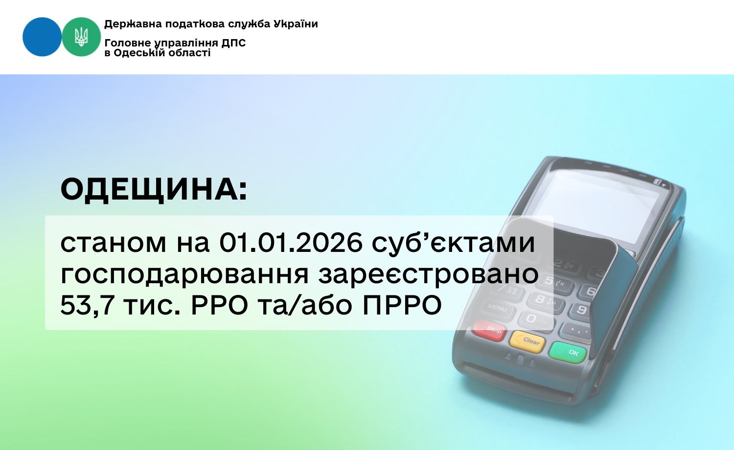 Станом на 01.01.2026 року 34 952 представника бізнесу Одещини зареєстрували 53 692 РРО та/або ПРРО.