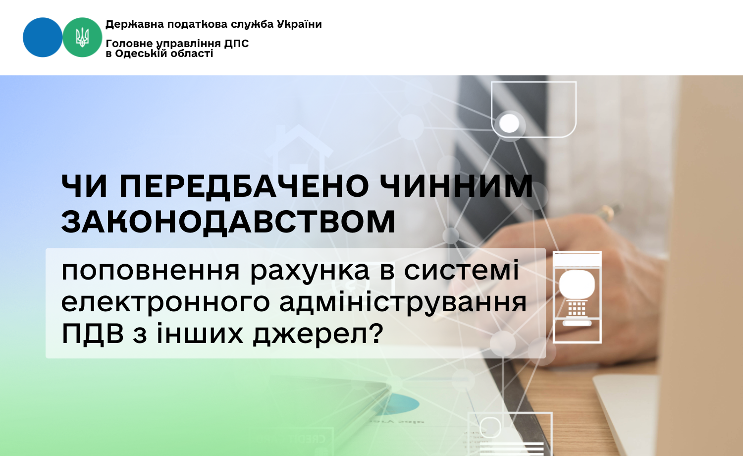 Головне управління ДПС в Одеській області повідомляє, що відповідно до п. 200 прим. 1.3 ст. 200 прим. 1 Податкового кодексу України від 02 грудня 2010 року № 2755-VІ (далі – ПКУ) складовою формули щодо суми податку, на яку платник має право зареєструвати податкові накладні та/або розрахунки коригування в Єдиному реєстрі податкових накладних (далі – ЄРПН) є загальна сума поповнення, зокрема, з рахунку у банку/небанківського надавача платіжних послуг платника податку рахунка в системі електронного адміністрування податку (SПопРах).