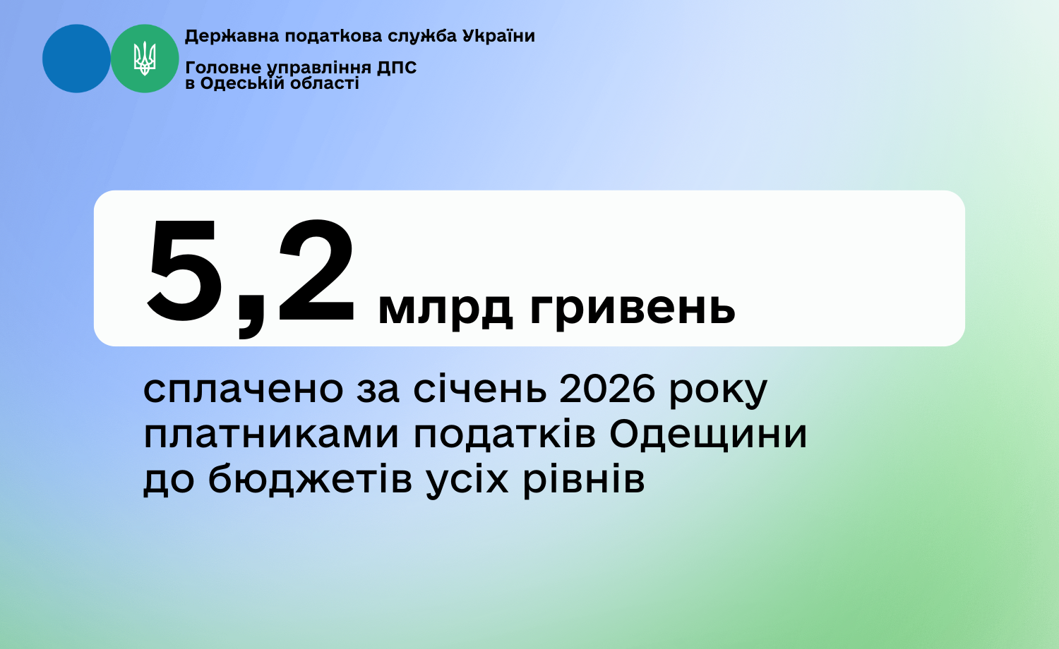 Із загальної суми, до державного бюджету надійшло 3 млрд грн, що на 5,7 %, або на 161,6 млн грн більше ніж за відповідний період 2025 року, а до бюджетів громад платниками податків Одещини сплачено 2,2 млрд грн, що на 11 %, або на 223,4 млн грн більше ніж за січень 2025 року.