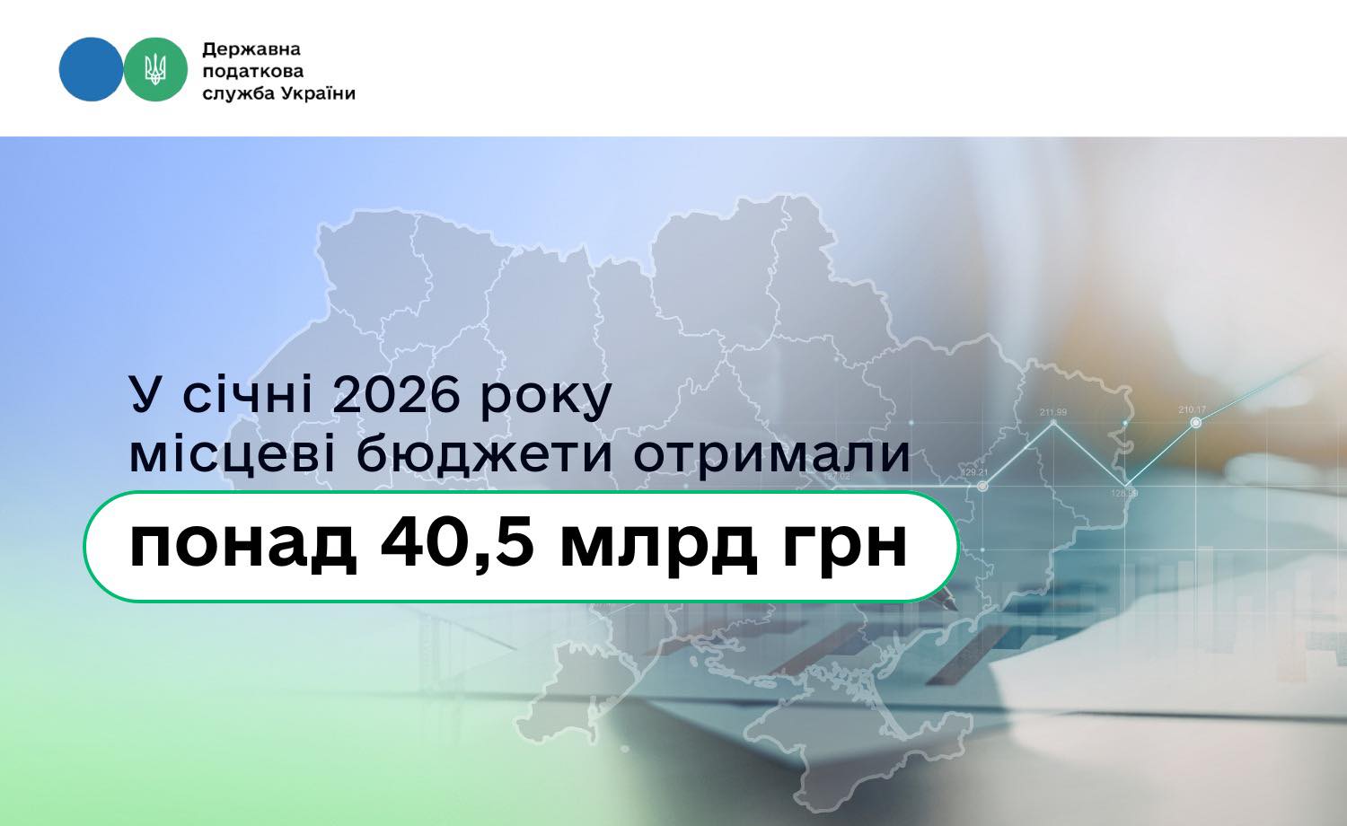 У січні 2026 року місцеві бюджети отримали понад 40,5 млрд грн. Це + 14,2 %, або 5 млрд грн до січня 2025 року.  Про це розповіла в. о. Голови ДПС Леся Карнаух на своїй сторінці у Facebook