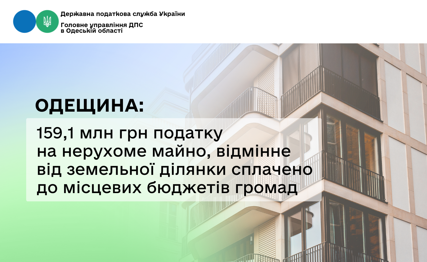 Як зазначив начальник Головного управління ДПС в Одеській області Юрій Гурський, за січень 2026 року платниками податків сплачено до місцевих бюджетів Одеського регіону 159,1 млн грн податку на нерухоме майно, відмінне від земельної ділянки, це на 14 %, або на 19,6 млн грн більше, ніж за відповідний період минулого року.
