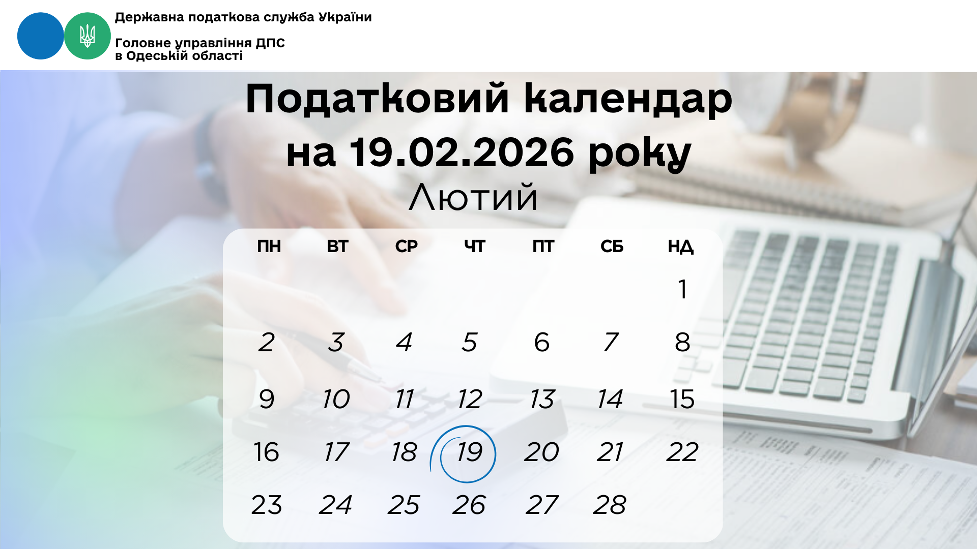 Податковий календар на 19 лютого 2026 року