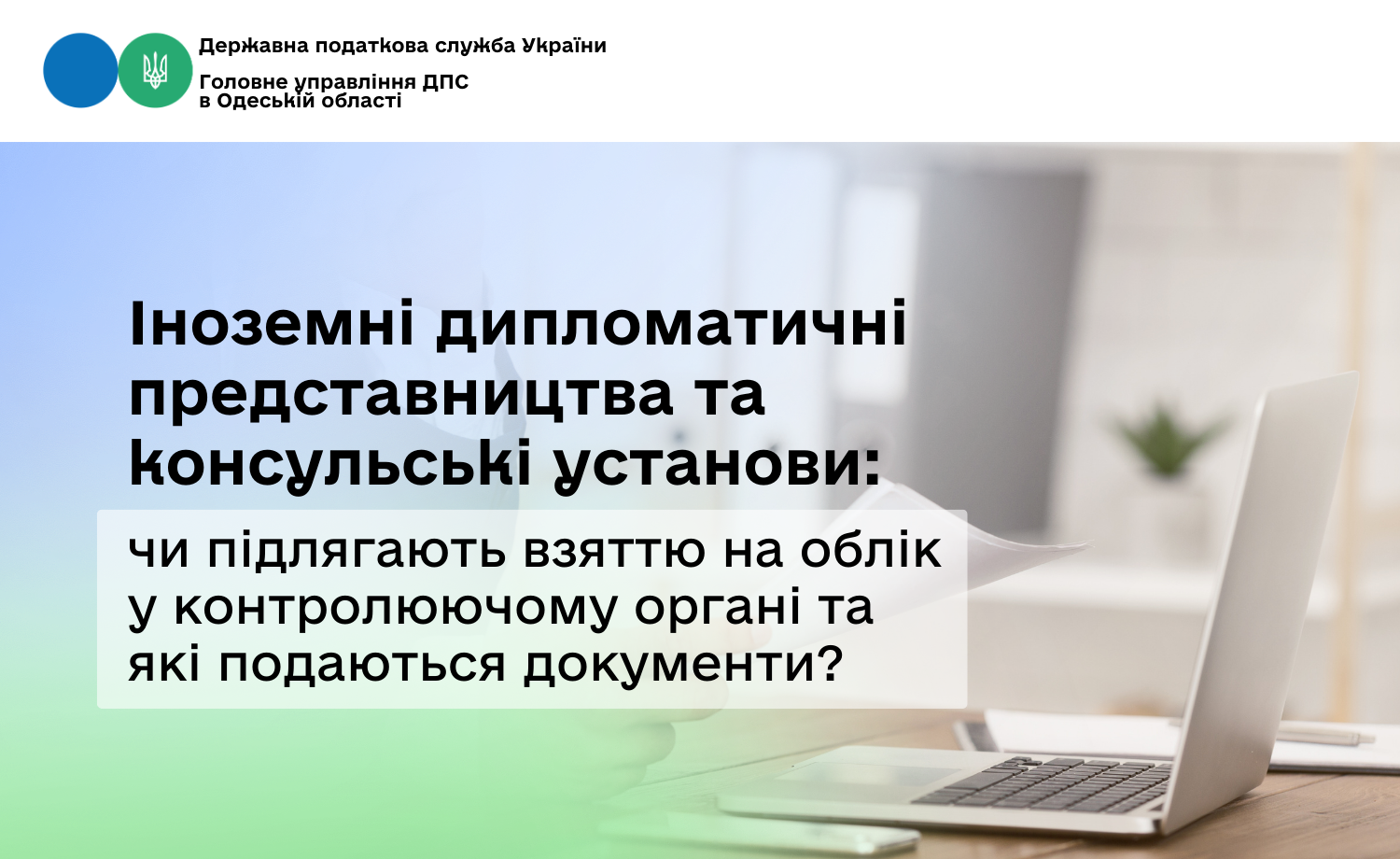 Головне управління ДПС в Одеській області інформує, що питання обліку у контролюючих органах іноземних дипломатичних представництв та консульських установ, представництв міжнародних організацій в Україні (далі – дипломатична місія) регулюються ст.ст. 63, 64 Податкового кодексу України від 02 грудня 2010 року № 2755-VI, п. 4.9 розд. ІV Порядку обліку платників податків і зборів, затвердженим наказом Міністерства фінансів України від 09.12.2011 № 1588, ст.ст. 4, 5 Закону України від 08.02.2010 № 2464-VІ «Про збір та облік єдиного внеску на загальнообов’язкове державне страхування», Порядком обліку платників єдиного внеску на загальнообов’язкове державне соціальне страхування, затвердженим наказом Міністерства фінансів України від 24.11.2014 № 1162.