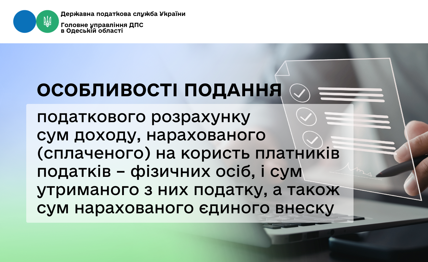 Наказом Міністерства фінансів України від 13.01.2015 № 4 затверджені форма Податкового розрахунку сум доходу, нарахованого (сплаченого) на користь платників податків – фізичних осіб, і сум утриманого з них податку, а також сум нарахованого єдиного внеску (далі – Розрахунок) та Порядок заповнення та подання податковими агентами Податкового розрахунку сум доходу, нарахованого (сплаченого) на користь платників податків – фізичних осіб, і сум утриманого з них податку, а також сум нарахованого єдиного внеску.