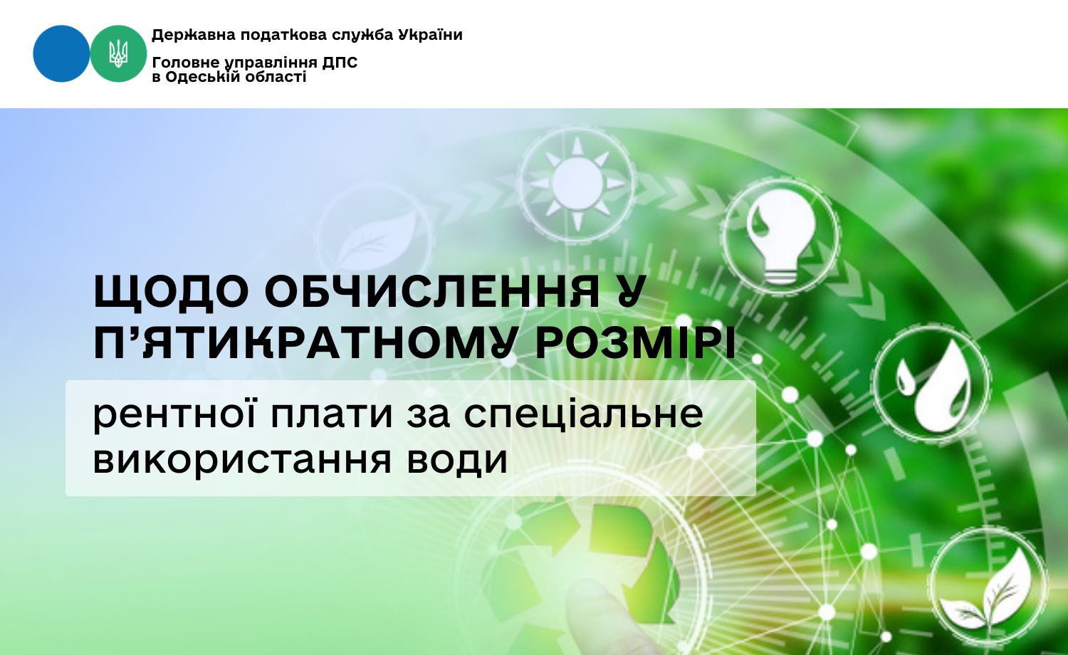 Головне управління ДПС в Одеській області інформує, що відповідно до п. 255.3 ст. 255 Податкового кодексу України від 02 грудня 2010 року № 2755-VI (далі – ПКУ) об’єктом оподаткування рентною платою за спеціальне використання води (далі – рентна плата) є фактичний обсяг води, який використовують водокористувачі.