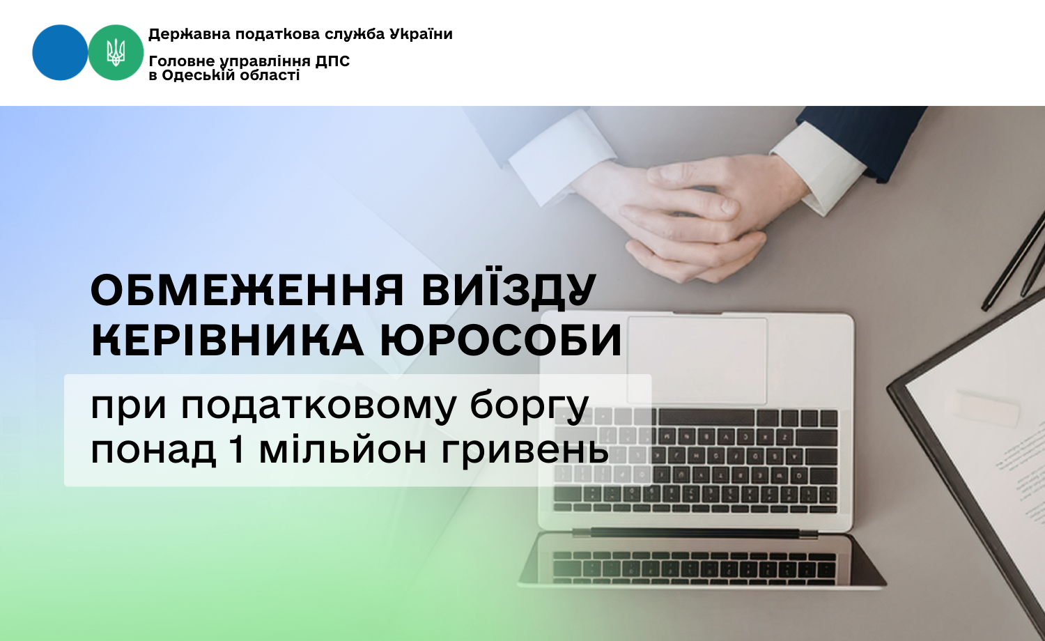 Головне управління ДПС в Одеській області повідомляє, що відповідно до п. 87.13 ст. 87 глави 9 Податкового кодексу України від 02 грудня 2010 року № 2755-VI із змінами та доповненнями (далі – ПКУ) у разі несплати протягом 240 календарних днів з дня вручення платнику податків податкової вимоги суми податкового боргу, що перевищує 1 мільйон грн., контролюючий орган може звернутися до суду за встановленням тимчасового обмеження у праві виїзду керівника юридичної особи або постійного представництва нерезидента – боржника за межі України – до погашення такого податкового боргу.