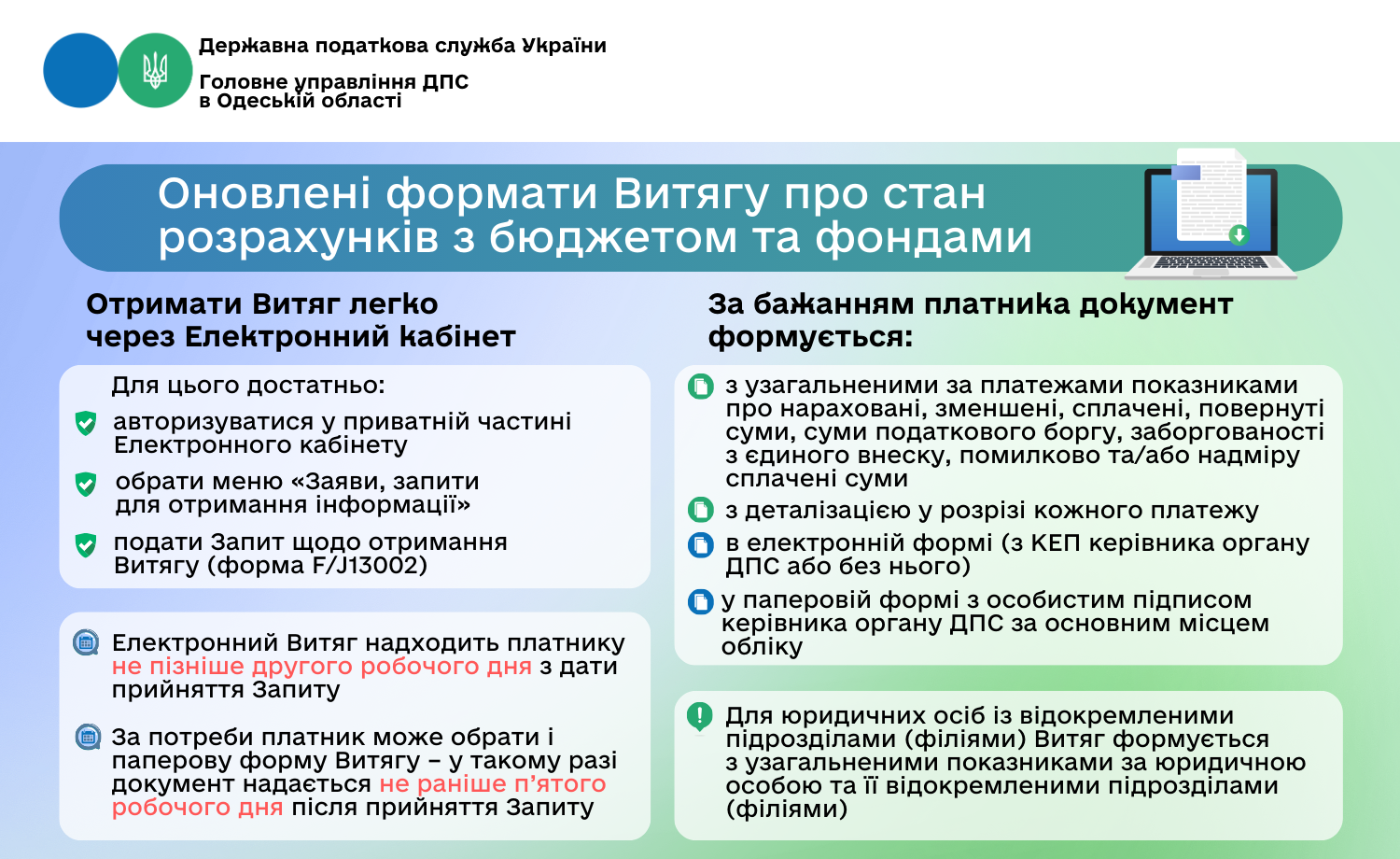 Оновлені формати Витягу про стан розрахунків з бюджетом та фондами