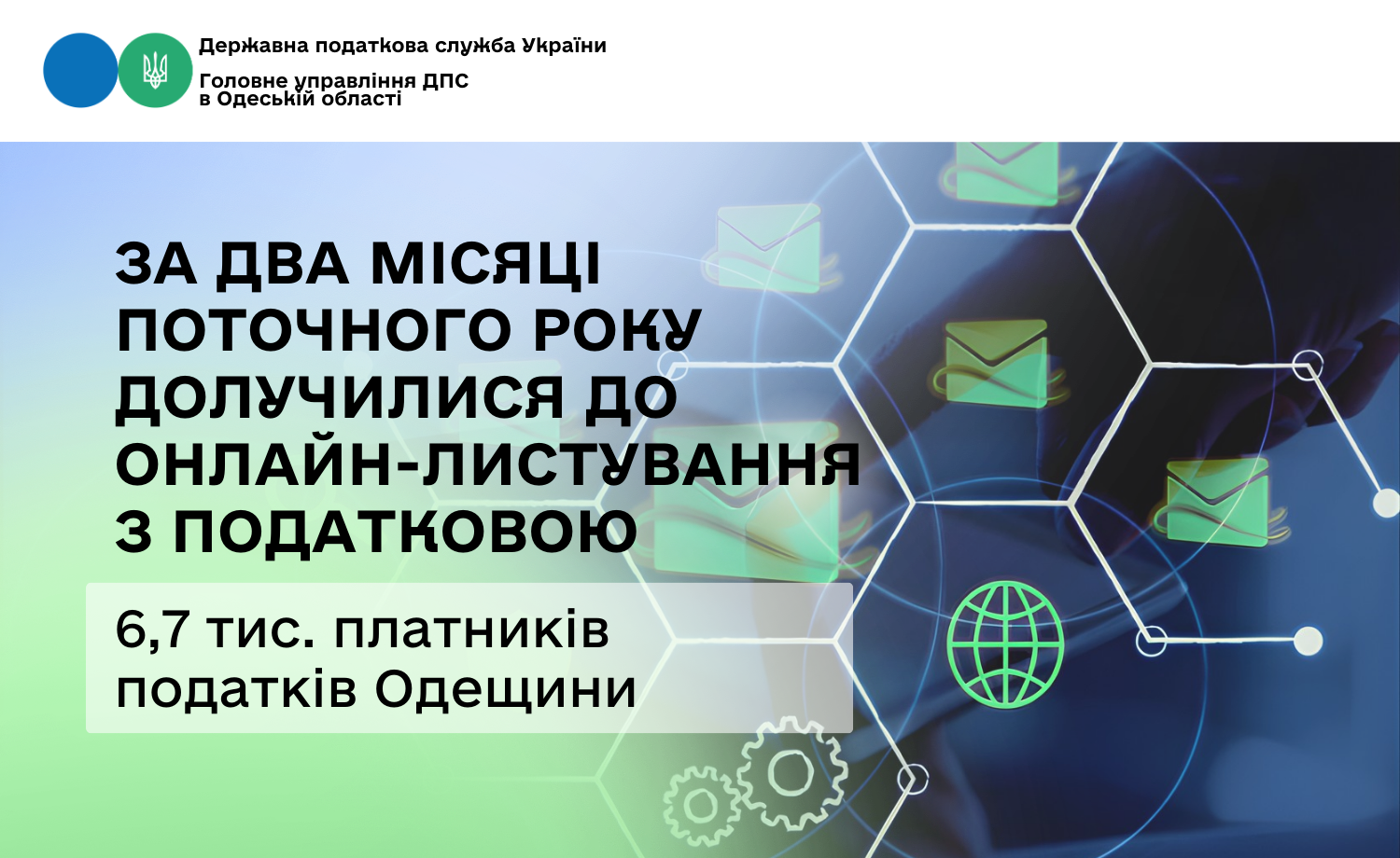 За січень-лютий 2026 року 6 736 платників податків Одещини подали до Головного управління ДПС в Одеській області Заяву про бажання отримувати документи через Електронний кабінет. У порівнянні з аналогічним періодом минулого року, кількість Заяв про бажання отримувати документи через Електронний кабінет зросла у 3,4 рази.