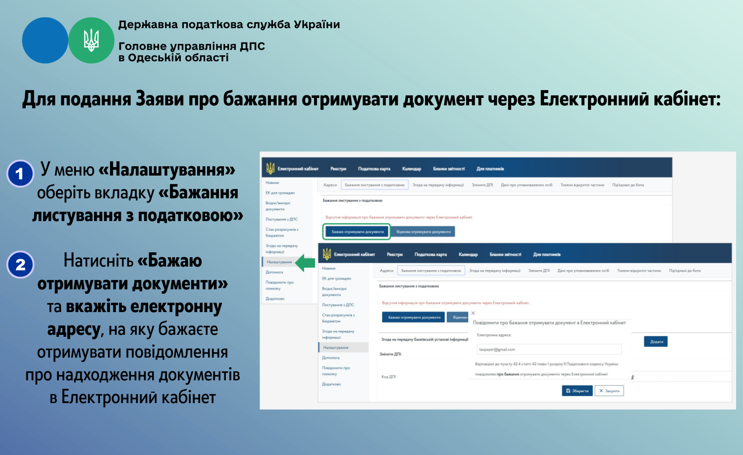 Як подати Заяву про бажання отримувати документ через Електронний кабінет